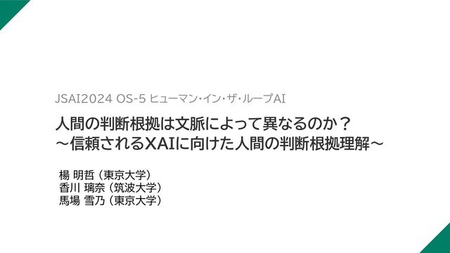 • XAIでは、タスク精度改善やAIへの信頼や理解への影響に注目[2] • AIを利用するかの判断において、利用者のAIへの信頼が関係[3] • AIへの信頼獲得のために、利用者にどのような説明が望ましいか明らかではない [1] Scott M. Lundberg and Su-In Lee. “A unified approach to interpreting model predictions.” NIPS'17 [2] Alufaisan, Yasmeen, et al. “Does explainable artificial intelligence improve human decision-making?." AAAI’21 [3] Venkatesh Sivaraman, et al. “Ignore, Trust, or Negotiate: Understanding Clinician Acceptance of AI-Based Treatment Recommendations in Health Care”. CHI’23 タスク精度向上 挙動理解 信頼醸成