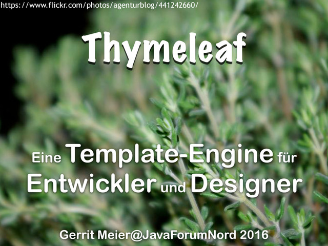Thymeleaf Gerrit Meier@JavaForumNord 2016 Eine Template-Engine für Entwickler und Designer