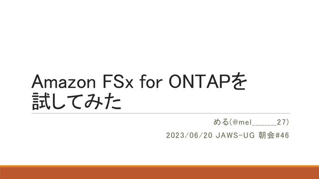 Amazon FSx for ONTAPを 試してみた める(@mel________27) 2023/06/20 JAWS-UG 朝会#46