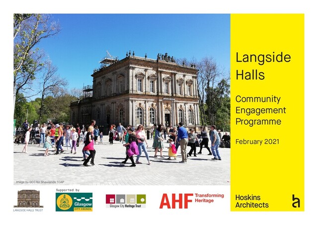 Community Engagement Programme, outlining Langside Hall Trust's vision for the future of Langside Halls. Respond to the proposals via the questionnaire on www.langsidehalls.com