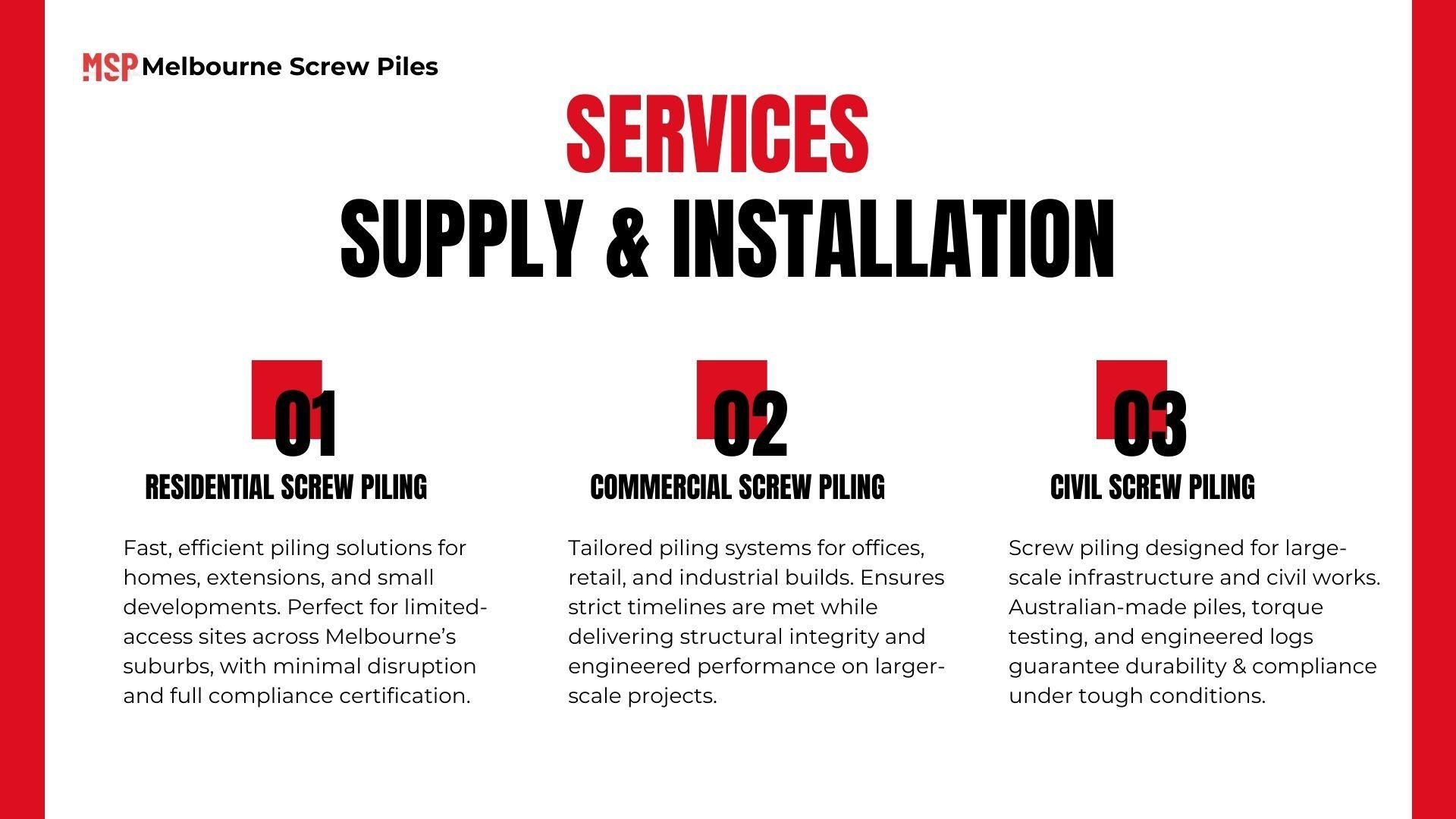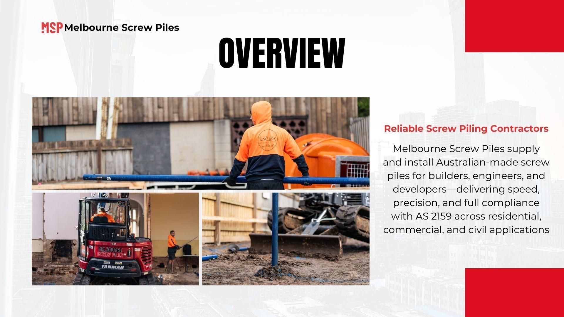 Hire Melbourne’s certified screw piling contractors today. From homes to large developments, we deliver strong and lasting screw pile foundations you can rely on. View this presentation and contact us today at: https://bit.ly/4gjyysT