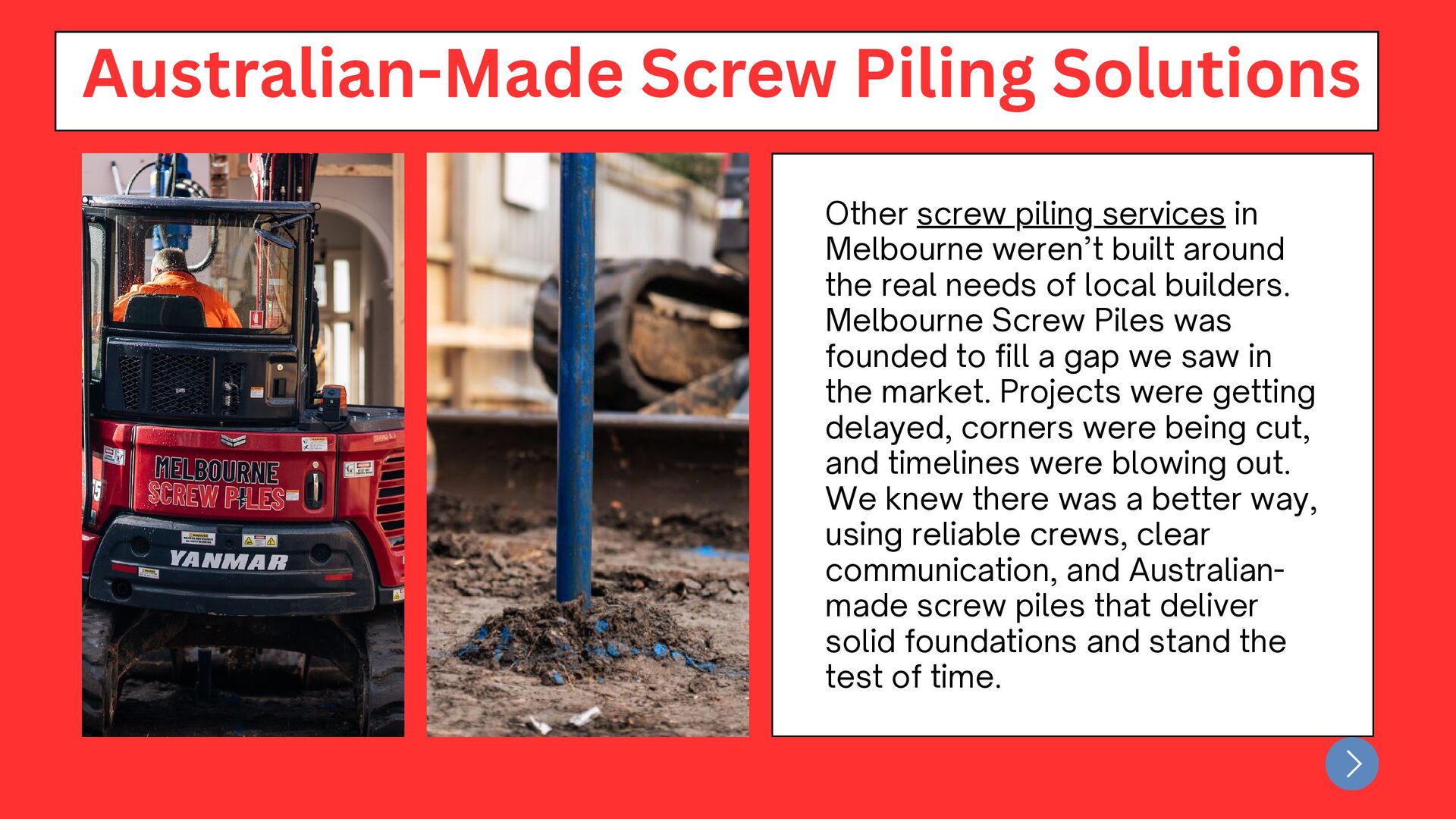 Looking for reliable screw pile installers near you? Melbourne Screw Piles delivers durable and efficient piling solutions for residential and commercial foundations. Explore our completed projects and expert services: https://melbournescrewpiles.com.au/projects/