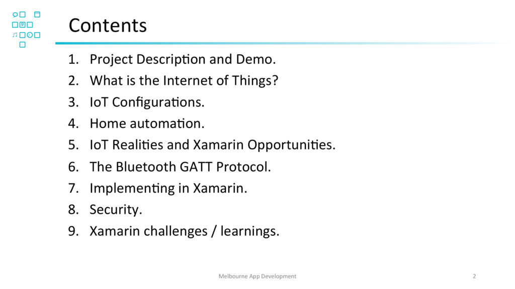The Internet Of Things often refers to applications controlling household or personal devices such as music, opening doors, listening to your heart rate. But from a developers perspective, what is IoT and how do you develop an IoT application controlling a device using Xamarin?