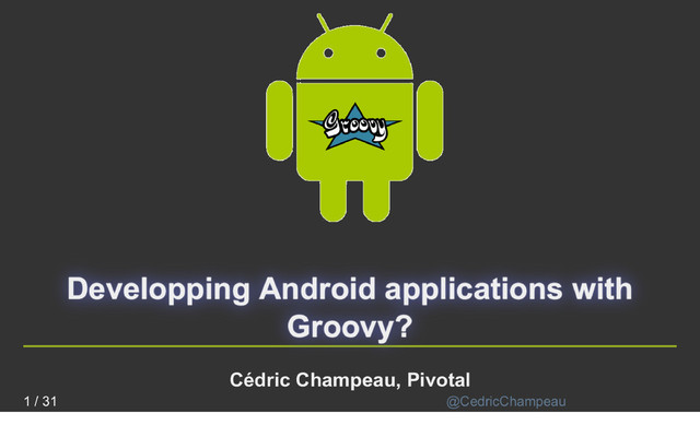 Presentation given at GR8Conf Europe 2014, demonstrating how to use the Groovy language to develop Android applications.