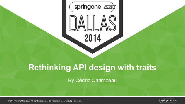 of interfaces to concrete classes • Traits do not suffer the diamond problem • Traits allow a new set of API to be written • APIs can be augmented without modifications or extension http://docs.groovy-lang.org/2.3.6/html/documentation/core-traits.html