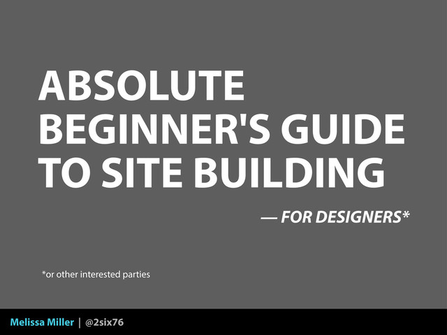 Melissa Miller | @2six76 SITE BUILDING CAN BE MANY THINGS