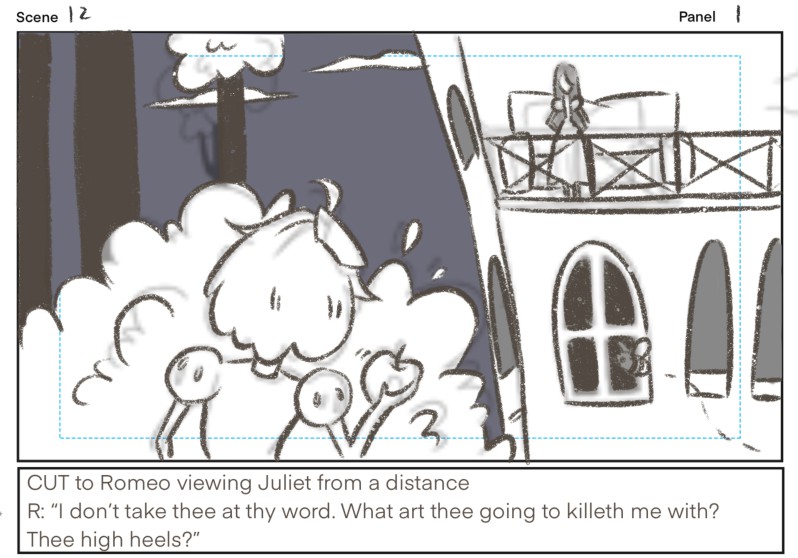 A parody of the balcony scene (Act 2 Scene 2) from Shakespeare's Romeo and Juliet Done on Procreate with Apple pen
