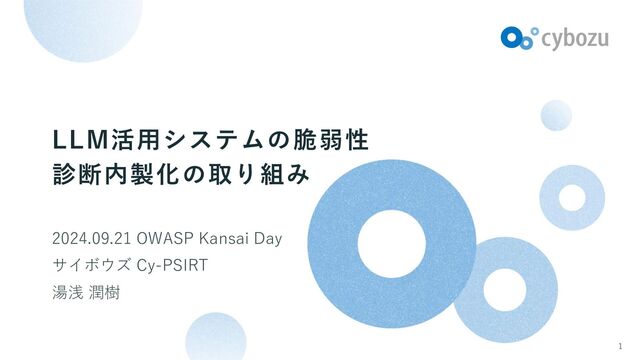 1. LLM活用システムの脆弱性診断内製化の取り組み@OWASP Kansai DAY 2024.09 ©️ Cybozu, Inc. 自己紹介 2 •