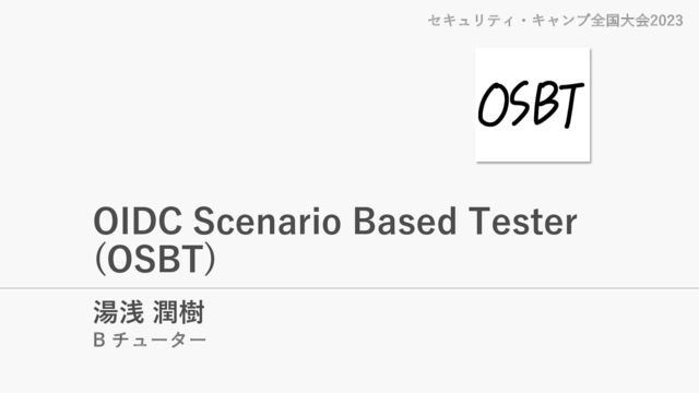 OIDC Scenario Based Tester (OSBT) 湯浅 潤樹 B チューター セキュリティ・キャンプ全国⼤会2023