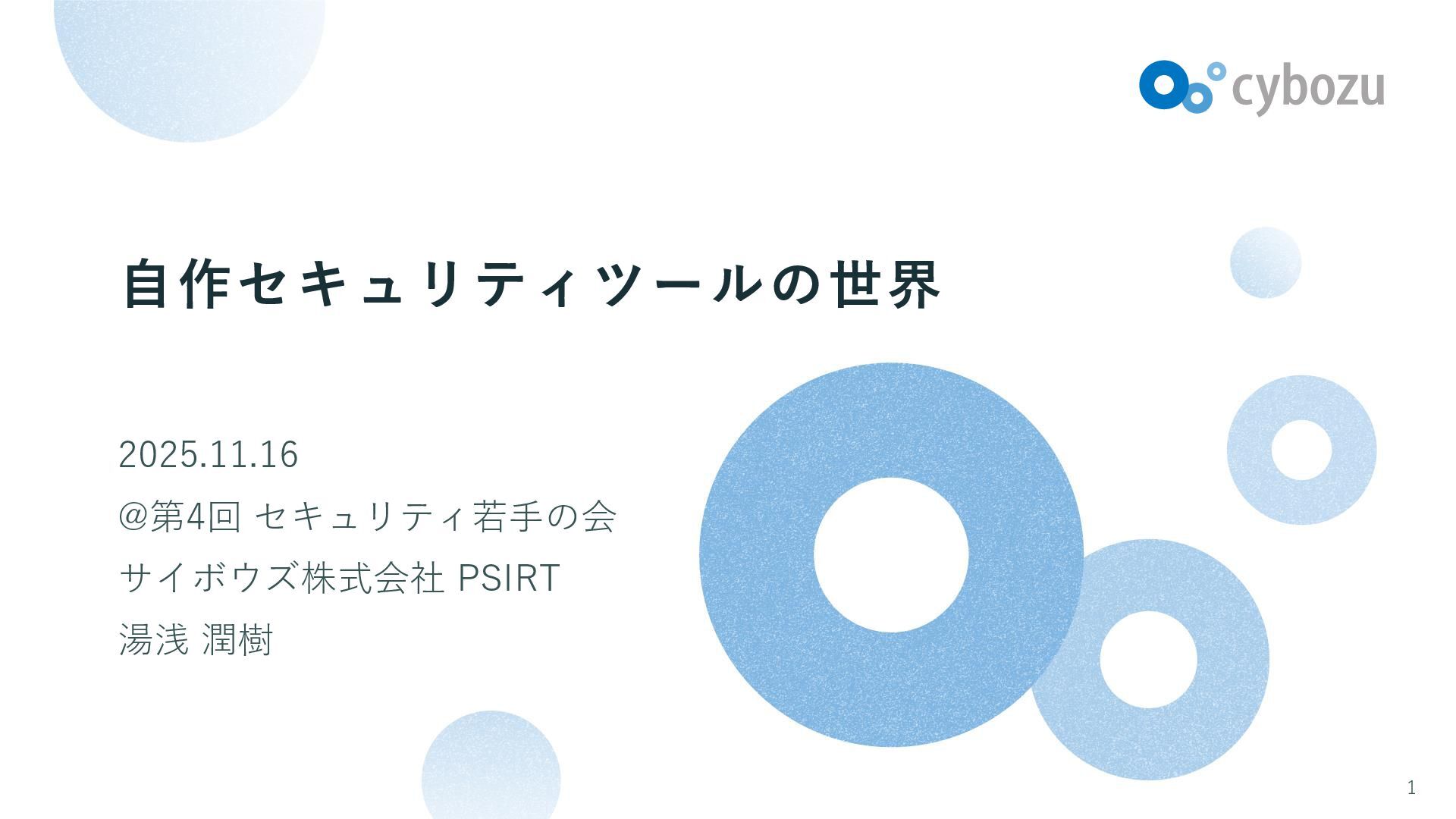 自作セキュリティツールの世界 2025.11.16 @第4回 セキュリティ若手の会 サイボウズ株式会社 PSIRT 湯浅 潤樹 1