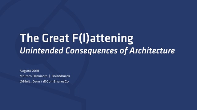 intended to provide a high level overview of the CoinShares investment philosophy adopted by certain investment products promoted by the CoinShares Group only. Nothing in this document should be interpreted as constituting an offer of (or any solicitation in connection with) any investment products or services by any member of the CoinShares Group (and nothing herein constitutes, or should be construed as being, advice relating thereto). Access to any investment products or services of the CoinShares Group is in all cases subject to the applicable laws and regulations relating thereto. CoinShares General Partner Limited and CoinShares GP II Limited, who are the joint issuers of this document, have their offices at 28 Esplanade, St Helier, Jersey JE2 3QA. References in this document to ‘CS Strategies’ should be interpreted as being a reference to a common investment philosophy adopted by a family of investment products promoted by the CoinShares Group. ‘CS Strategies, CS1, or CS2’ is not a reference to any particular investment product or structure. The specific application of the ‘CS Strategies’ investment philosophy, and the actual investments held by products pursuing it, will differ on a product-by-product basis. Each ‘CS Strategies’ investment product may have a distinct structure, including (without limitation) in respect of fee arrangements applicable thereto, and regulatory treatment in the jurisdiction in which it is domiciled. The information presented in this document has been developed internally and / or obtained from sources believed to be reliable; however, no representation or warranty, express or implied, is made as to the accuracy, reliability, or completeness of such information. Predictions, opinions and other information contained in this document are subject to change continually and without notice of any kind and may no longer be true after the date indicated. Any forward-looking statements speak only as of the date they are made, and the CoinShares Group has no responsibility, and does not undertake, to update forward-looking statements. Forward-looking statements are subject to numerous assumptions, risks and uncertainties, which change over time. The CoinShares Astronaut is a trademark and service mark of CoinShares (Holdings) Limited. © 2019 CoinShares Group. All rights reserved. Note Ms. Demirors herself is an investor in cryptocurrencies and companies, some of which are referenced in this deck for informational purposes only. You can find her disclosures and investments at meltemdemirors.com under “disclosure” and “investments”. Important Disclaimer