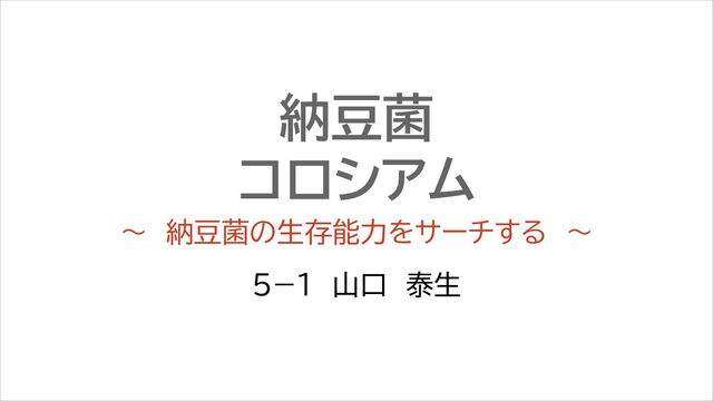 納豆菌 コロシアム 5−1 山口 泰生 ~ 納豆菌の生存能力をサーチする ~