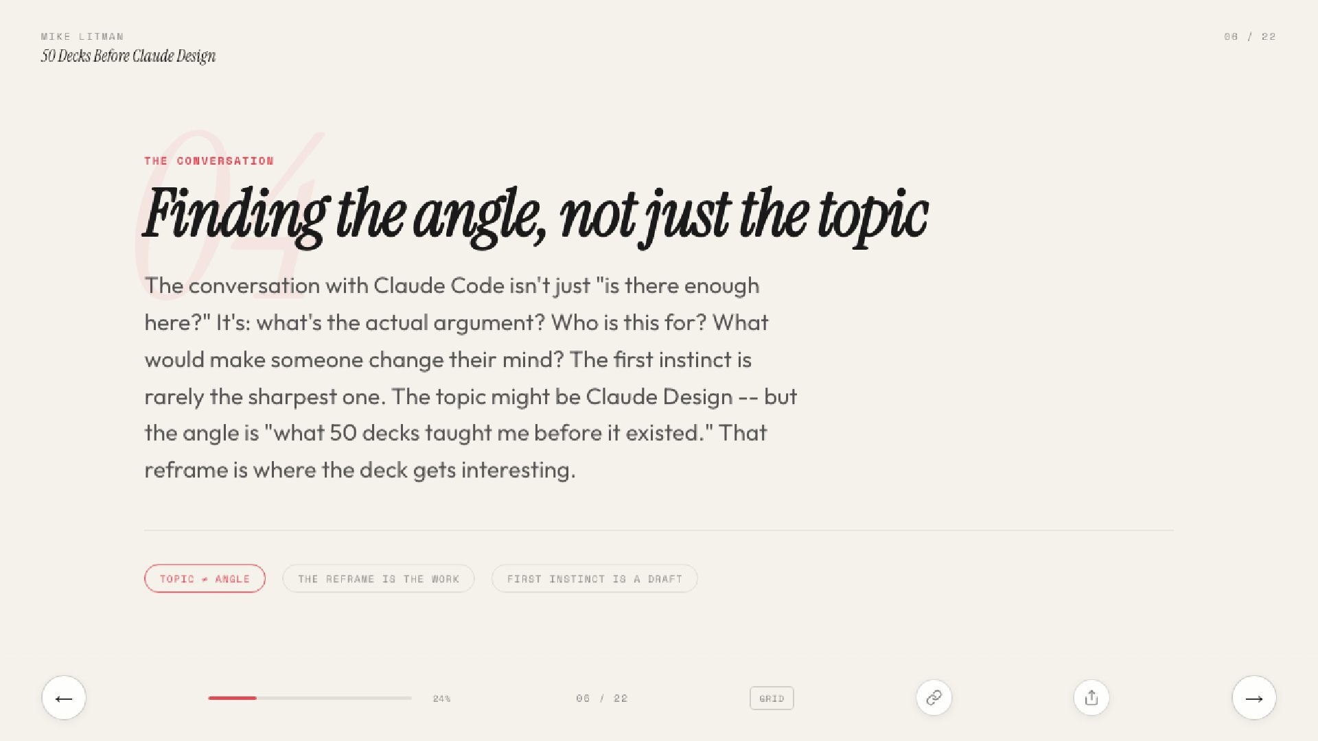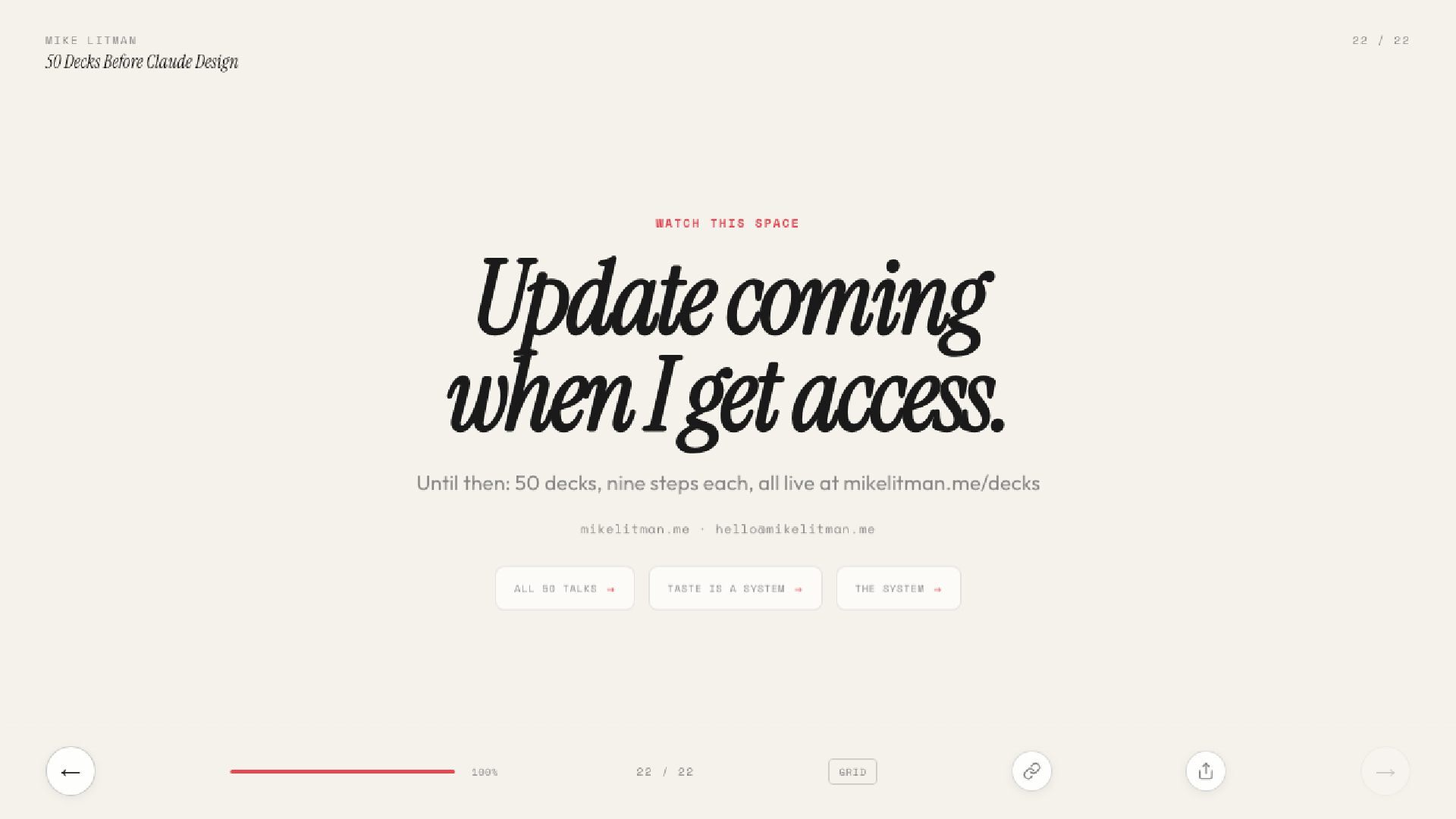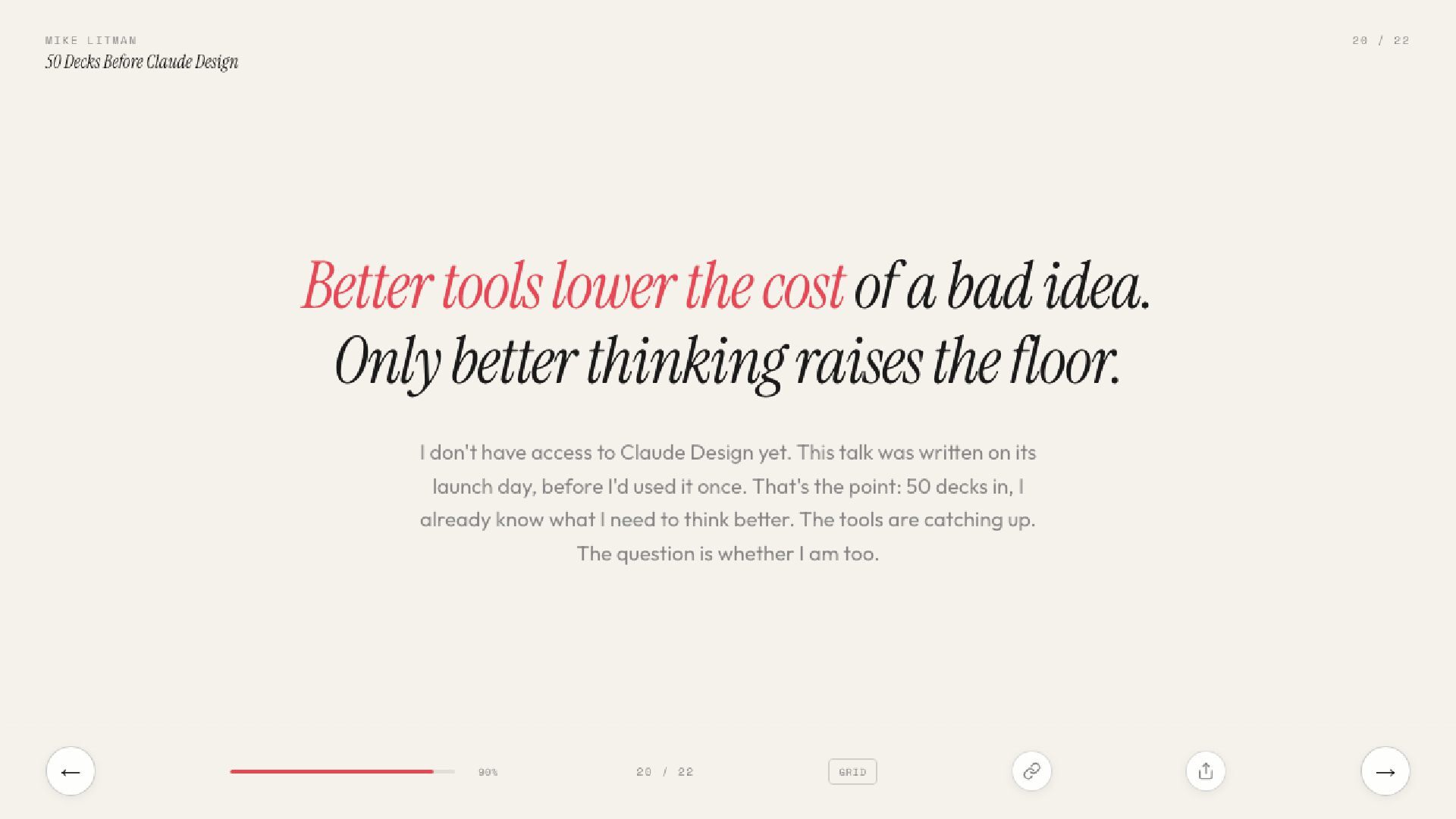 Full talk: https://mikelitman.me/beforeclaudedesign