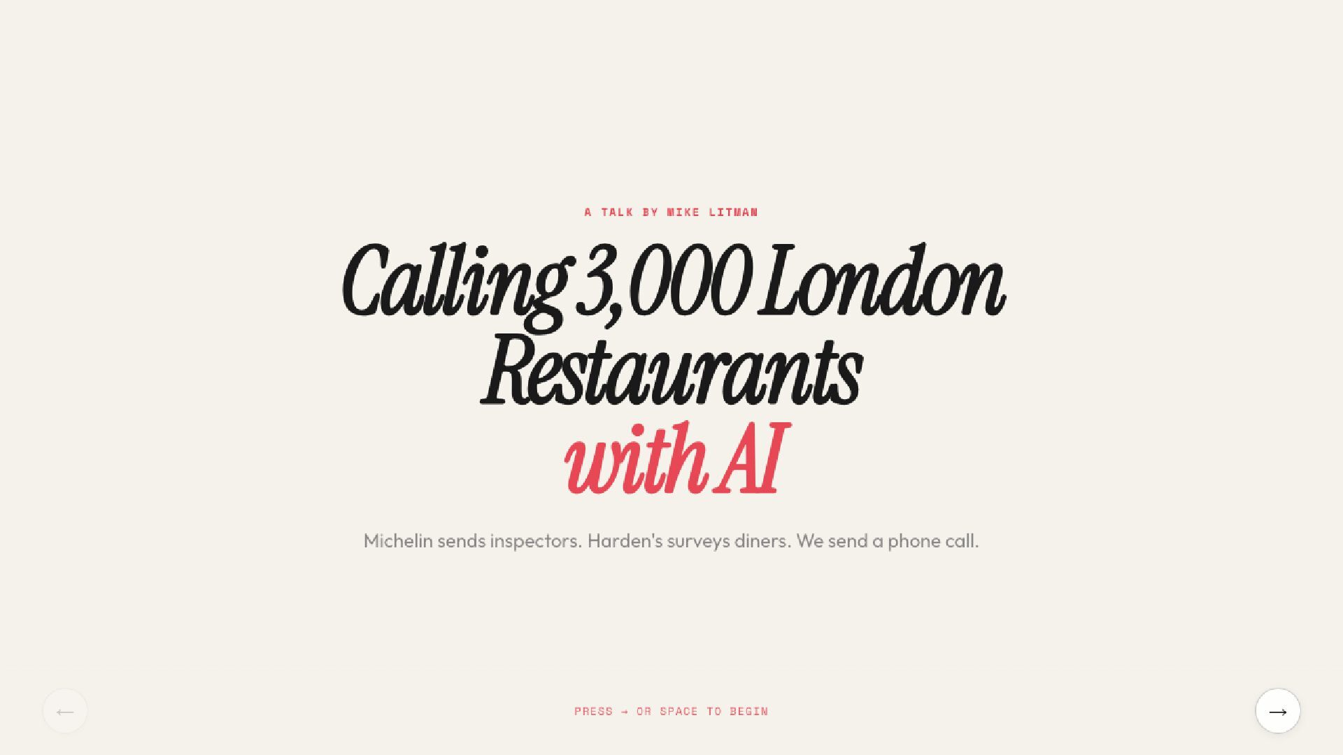 Full talk: https://mikelitman.me/calling-london-restaurants
