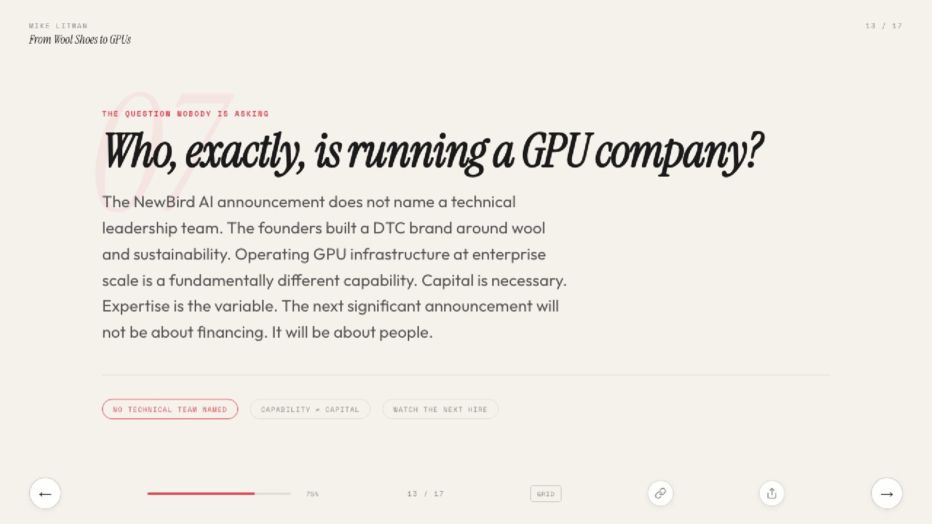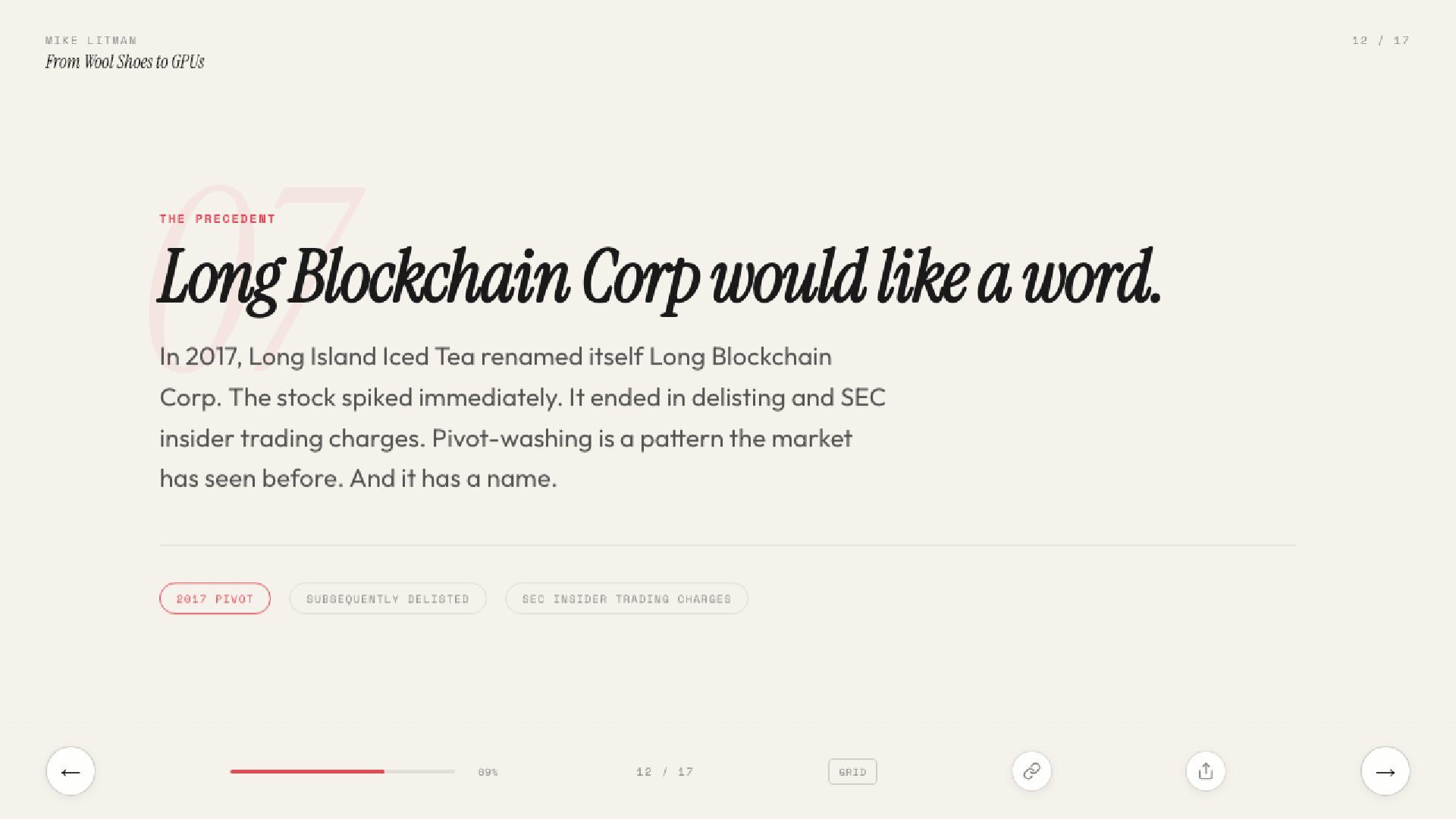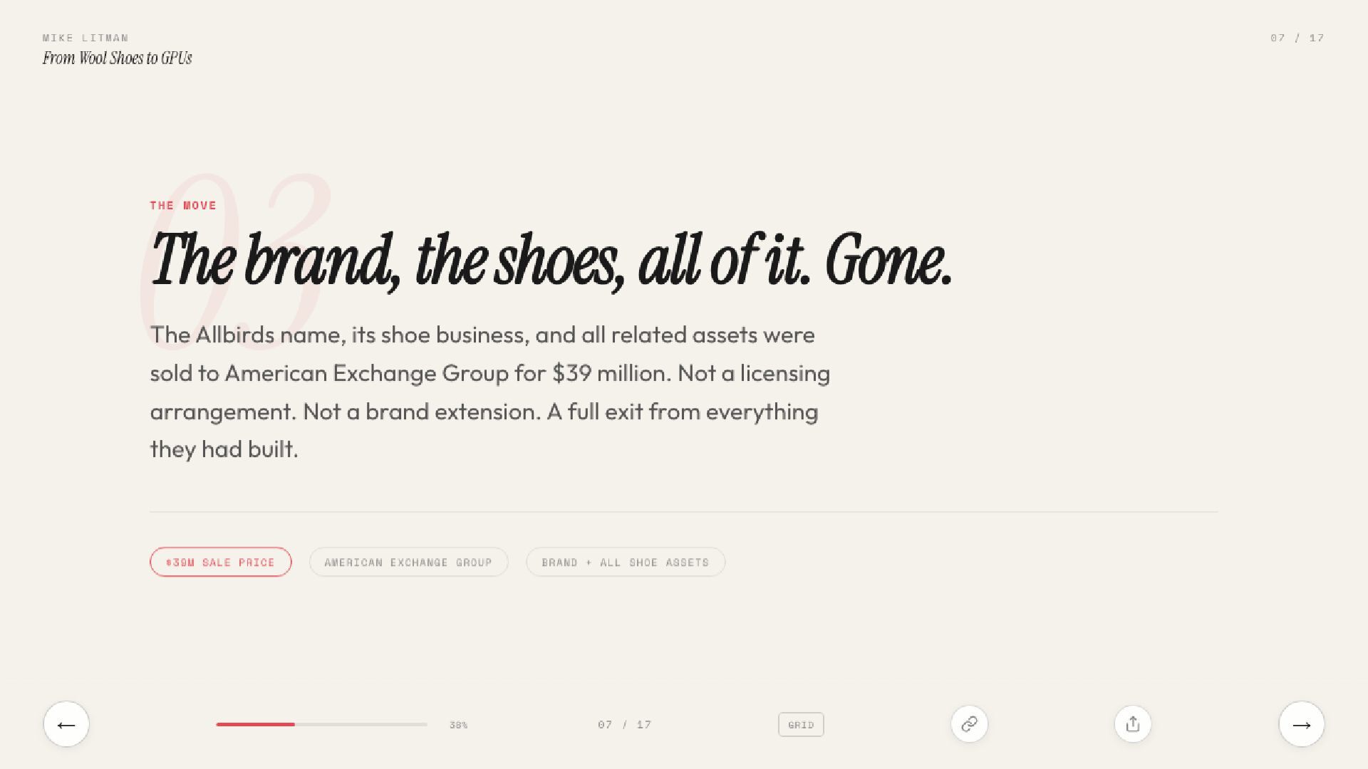 On 15 April 2026, Allbirds announced it would sell its brand and shoe assets to become NewBird AI, a GPU-as-a-Service provider. The stock spiked 400%. With $39M from the asset sale and $50M in new convertible financing, this is either the greatest reinvention in recent memory or the next Long Blockchain Corp.