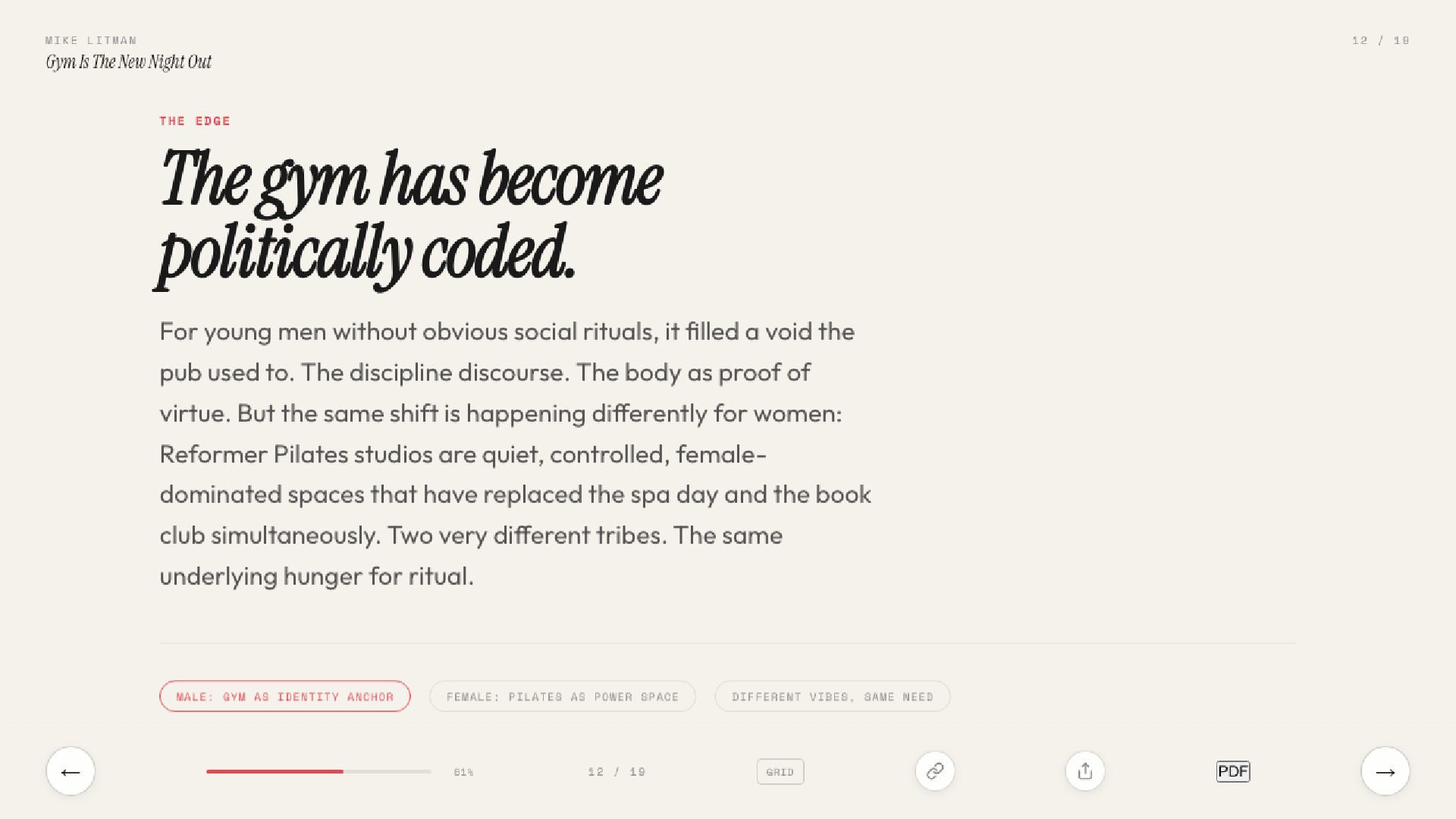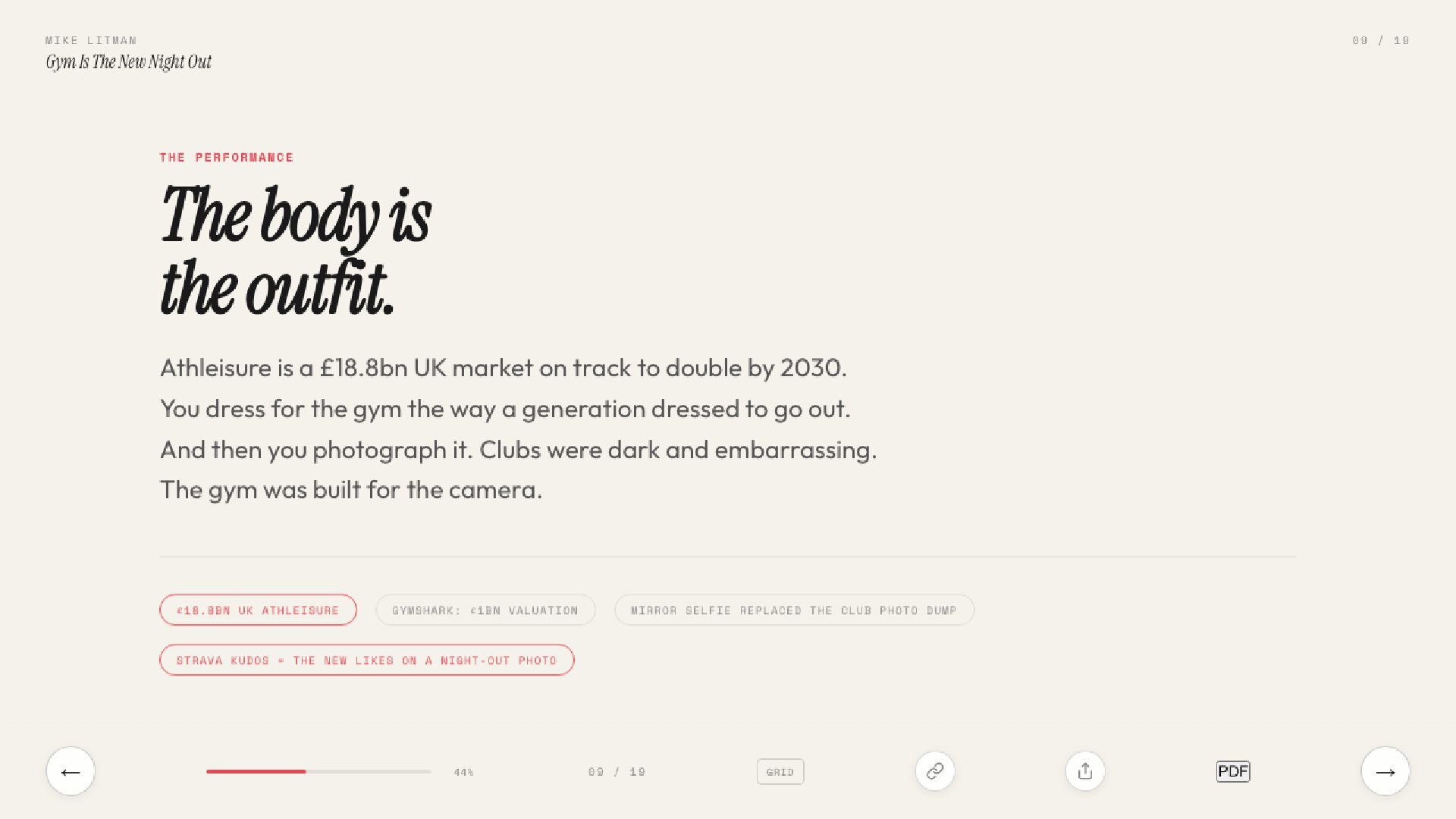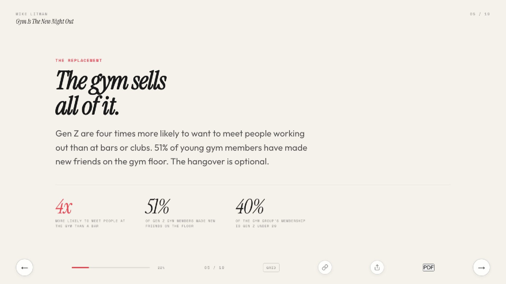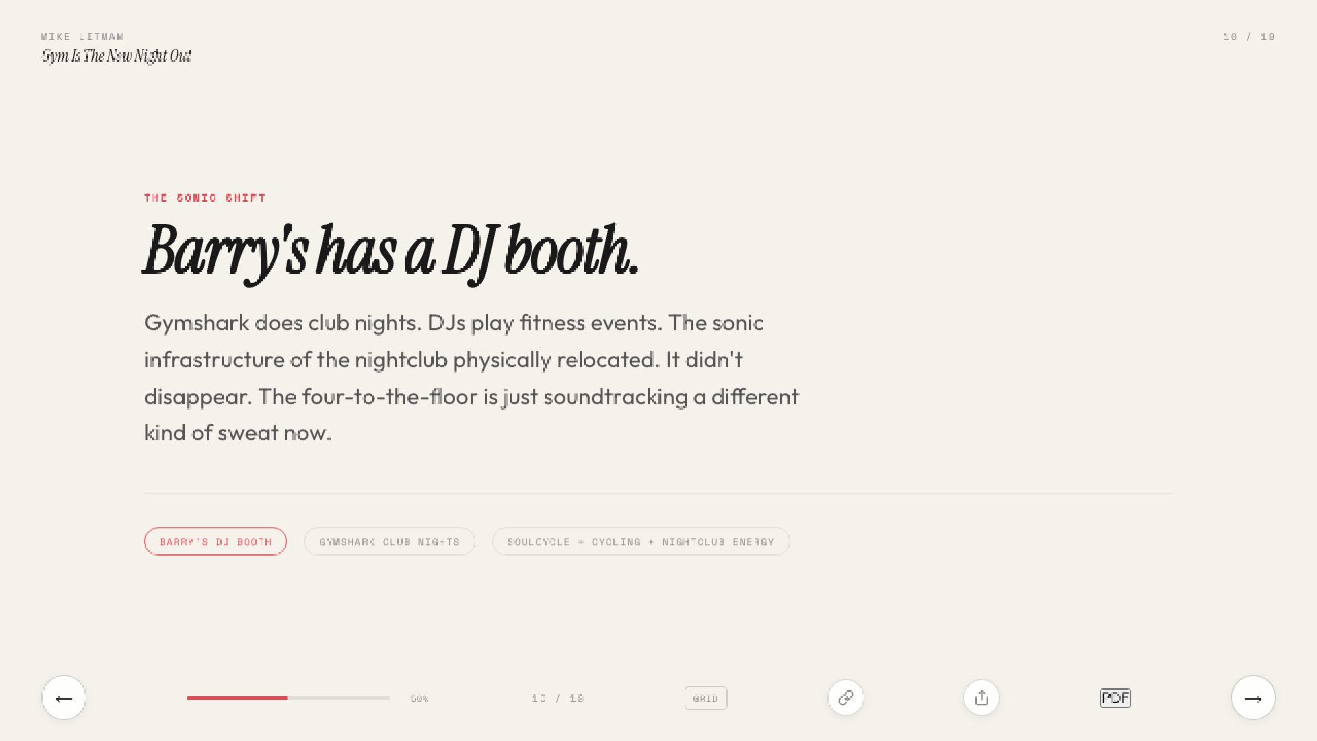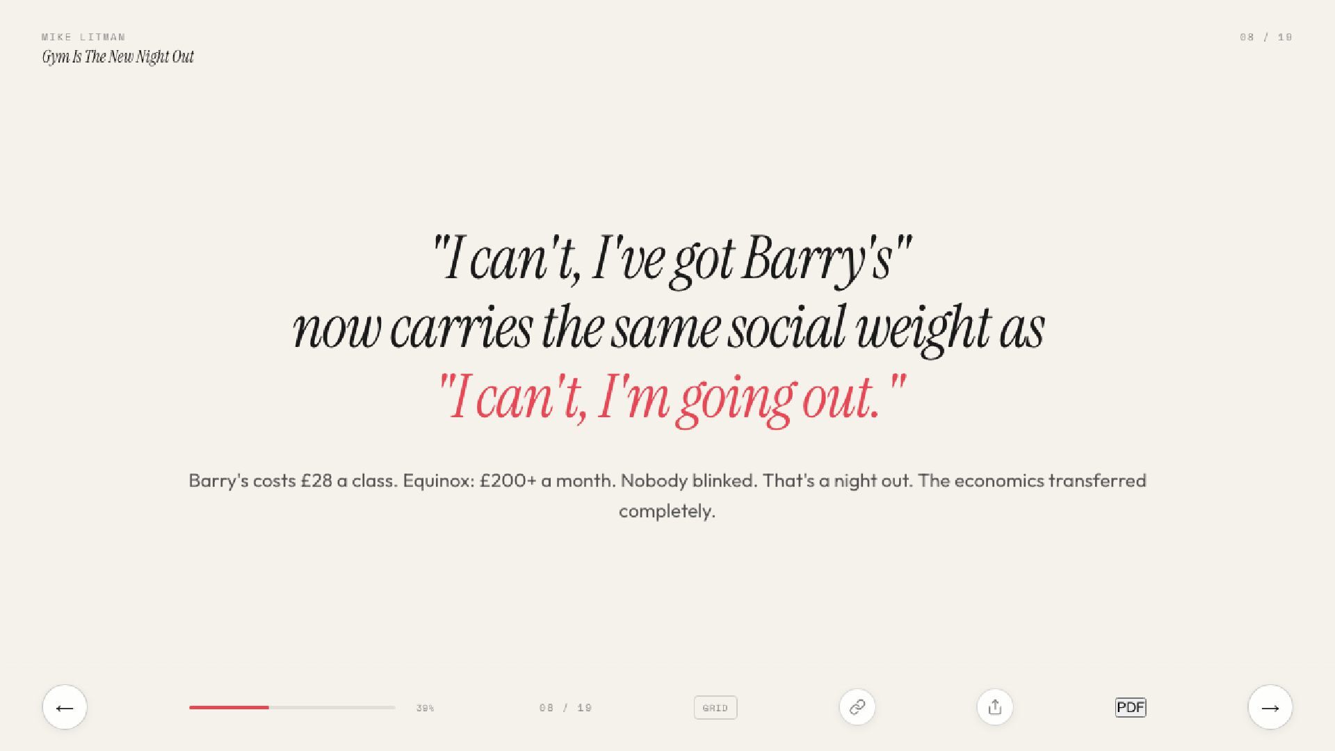 480 UK nightclubs closed since 2020. Two per week. Meanwhile boutique fitness grew 121%, Gen Z are 4x more likely to meet people at the gym than a bar, and Barry's has a DJ booth. The night out didn't die. It just got up earlier.