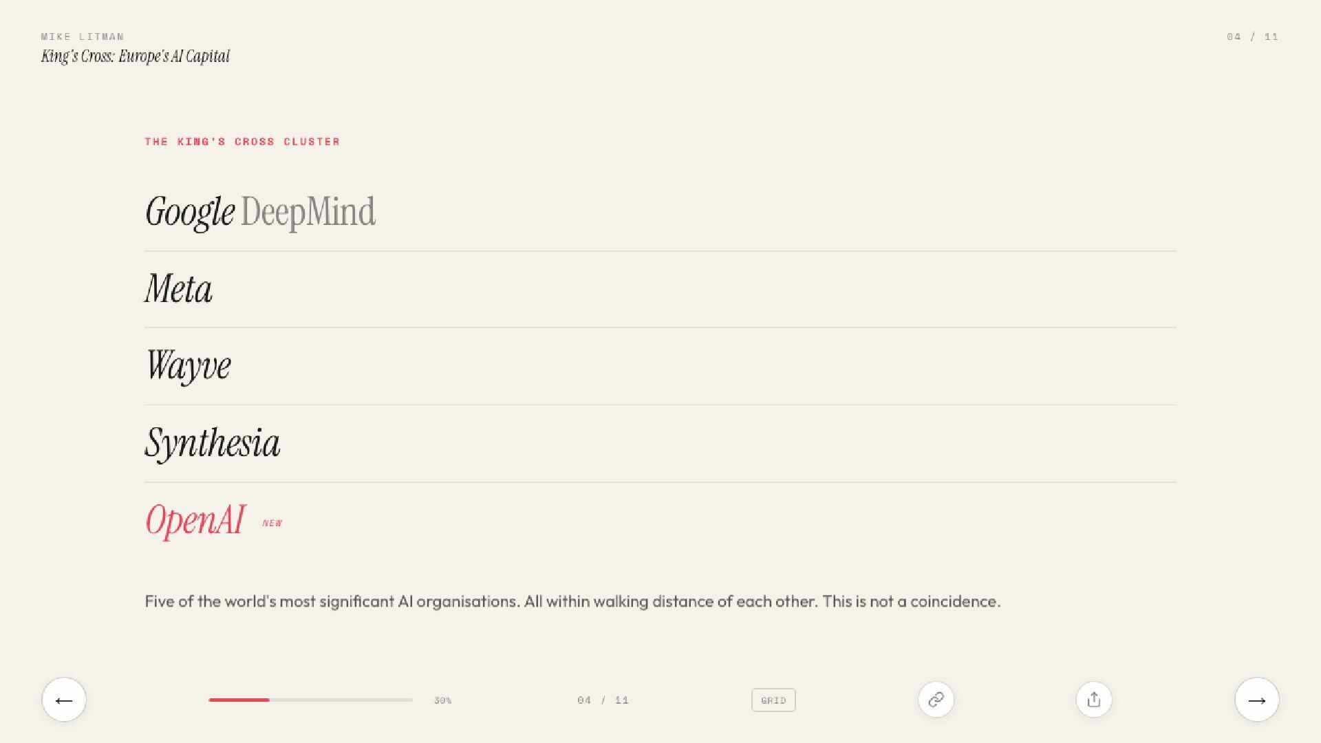 Five AI giants, one postcode. OpenAI's King's Cross office (88,500 sq ft, 500+ capacity) lands four days after Stargate UK is paused. The UK isn't winning the infrastructure war. It's winning the talent war.