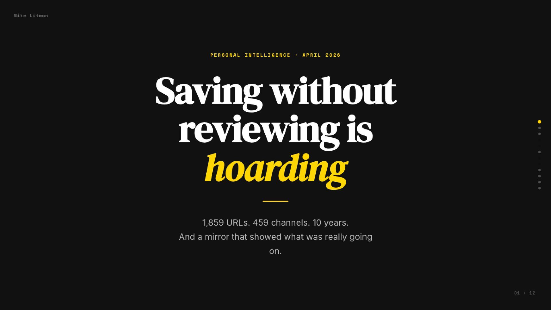Full talk: https://mikelitman.me/hoarding
