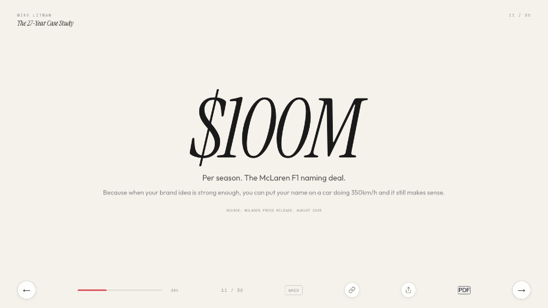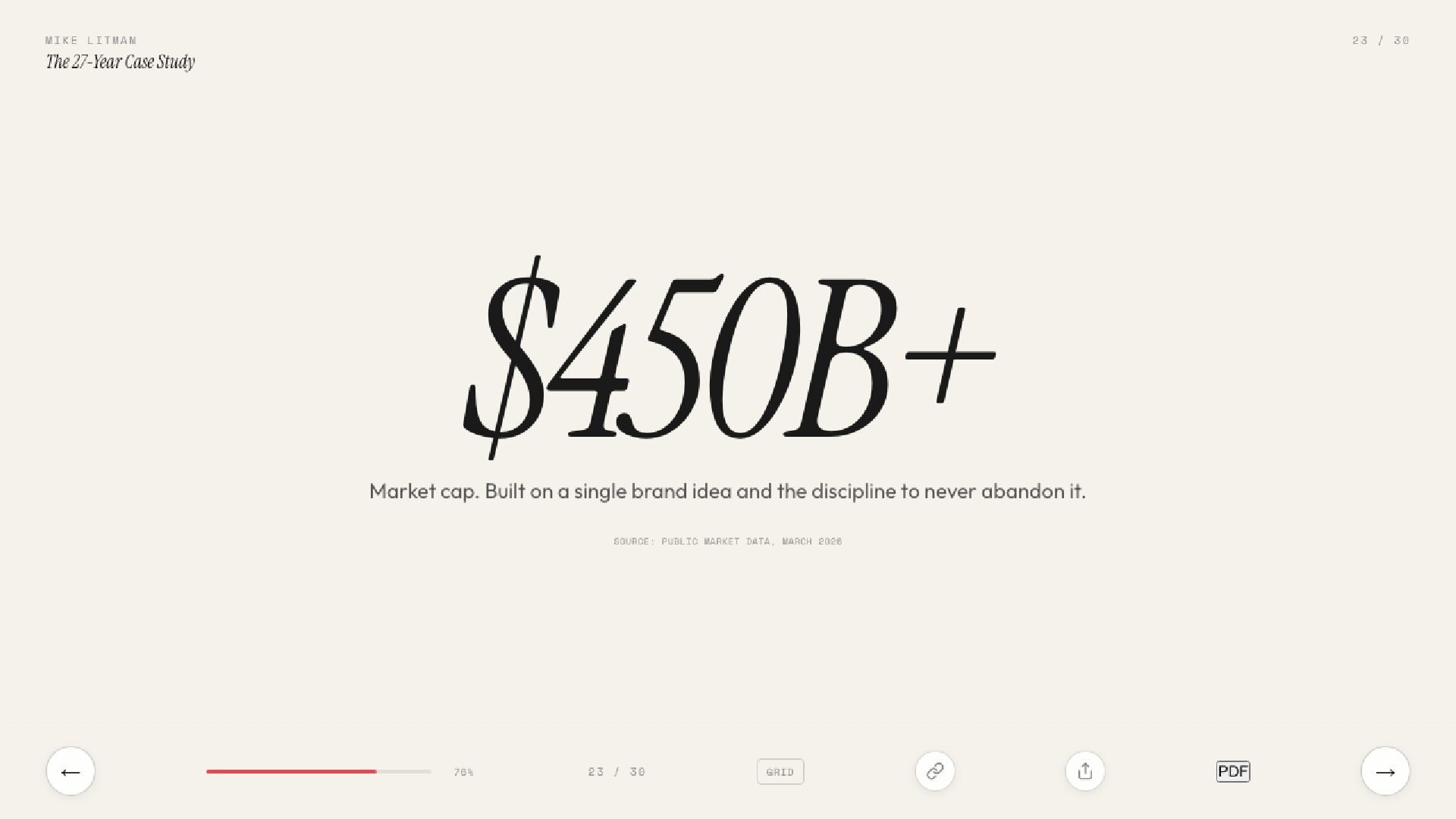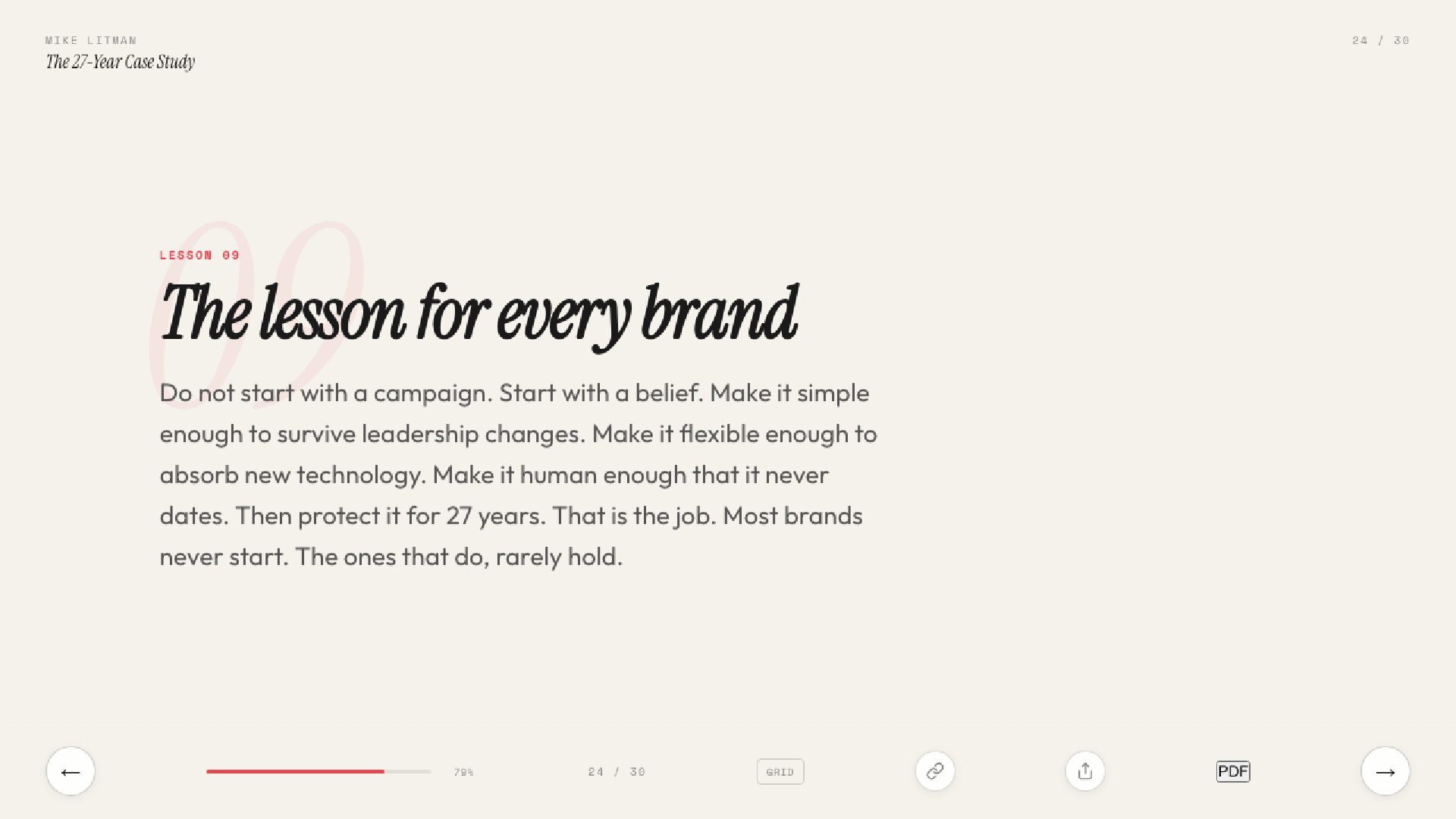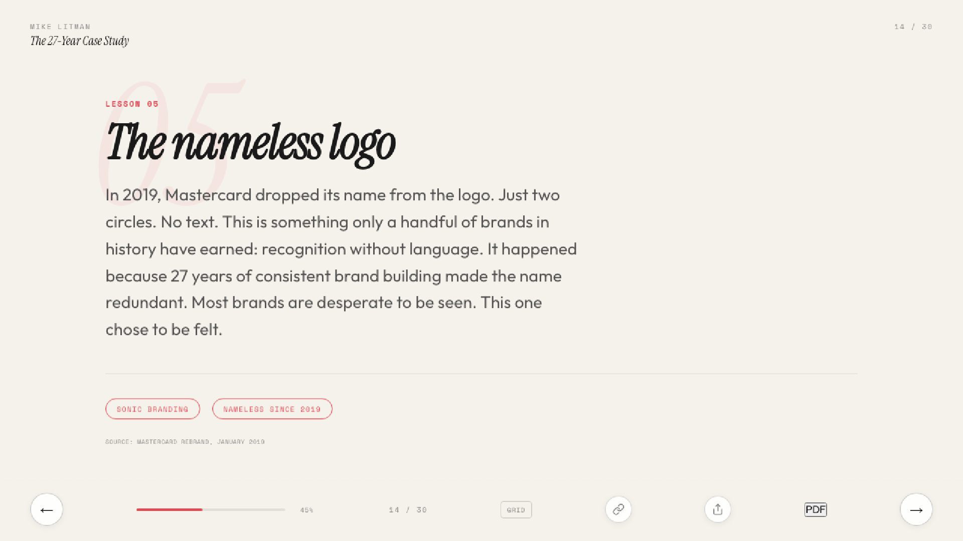 The 27-year case study in experience over product. 28 slides on why Mastercard's Priceless campaign is the longest-running proof that emotional value outlasts transactional value.