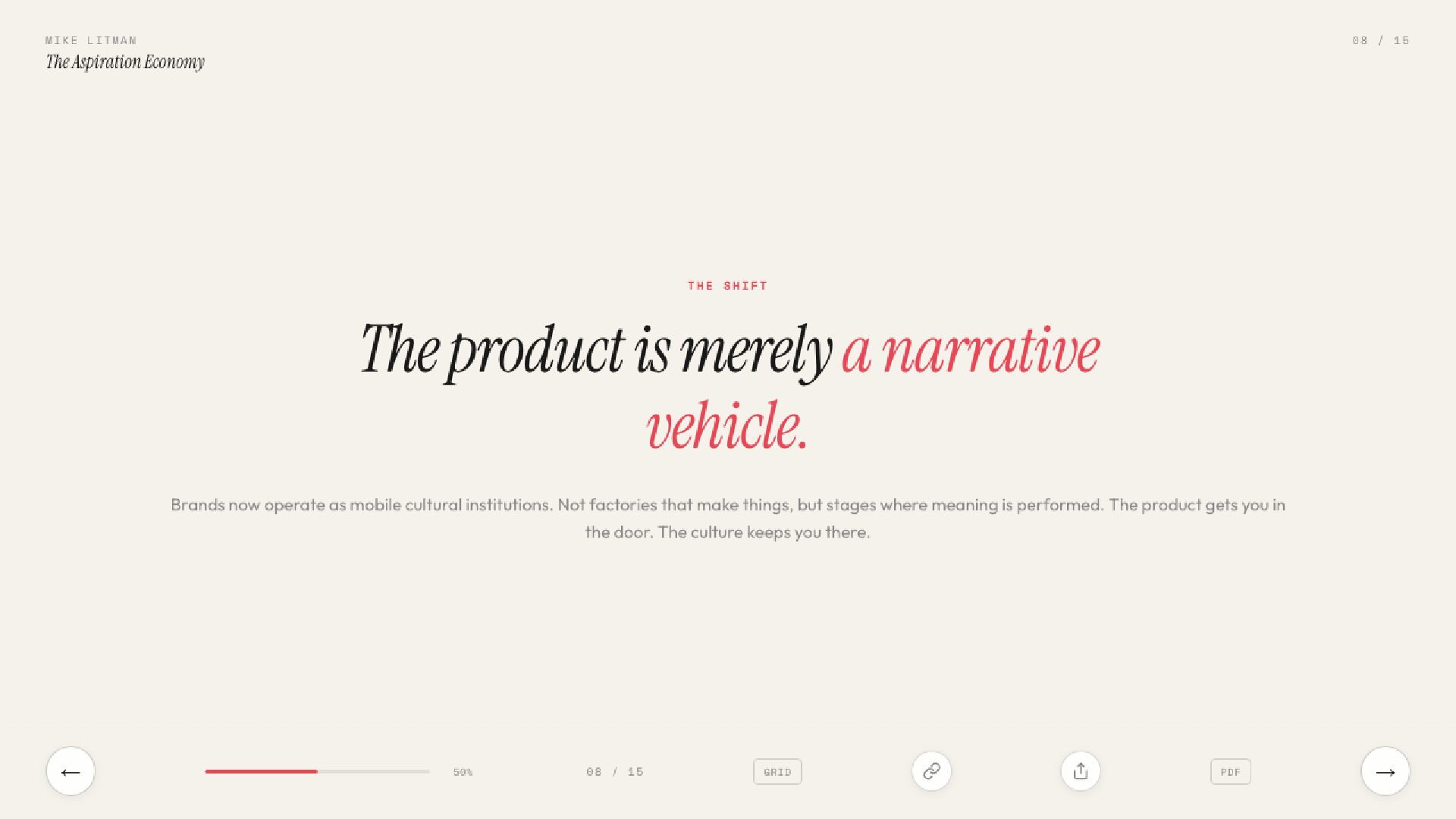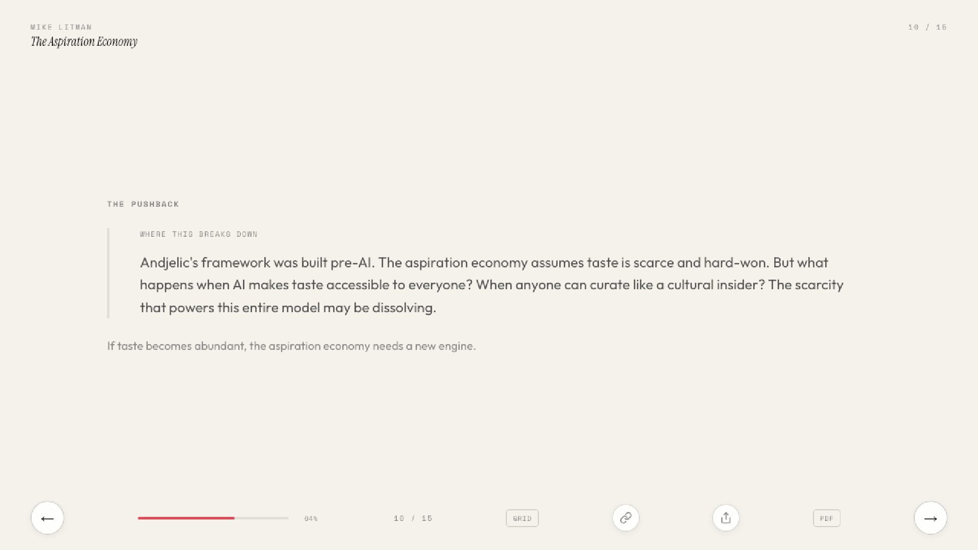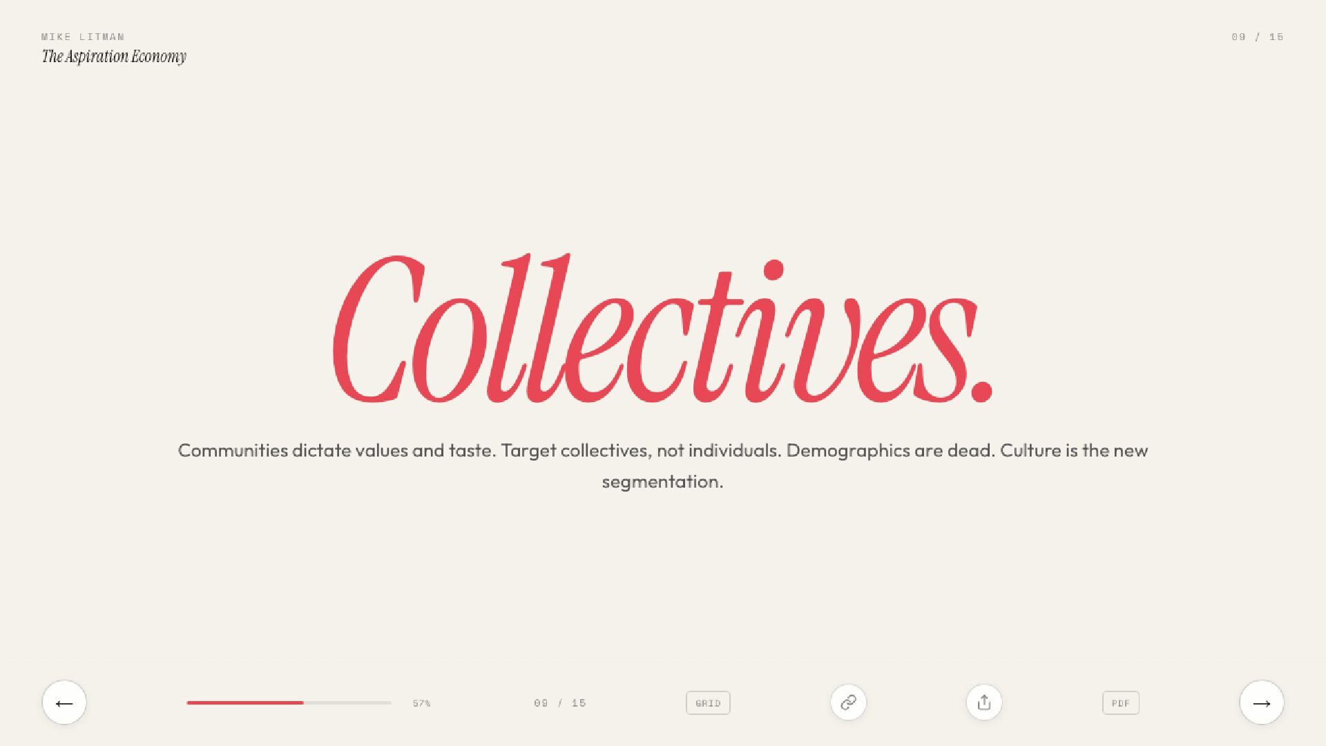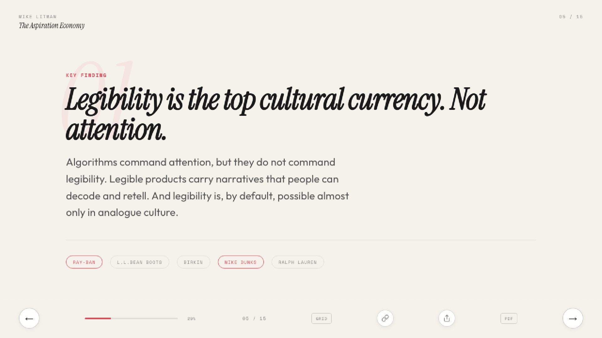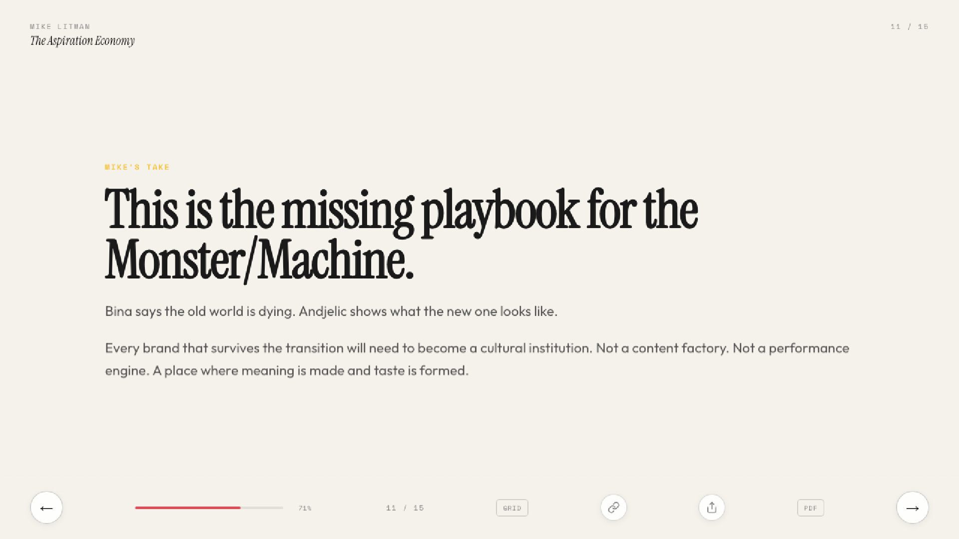 Key learnings from Ana Andjelic's The Business of Aspiration. Modern aspiration is not about having money to buy things, but having the taste to know what to buy.
