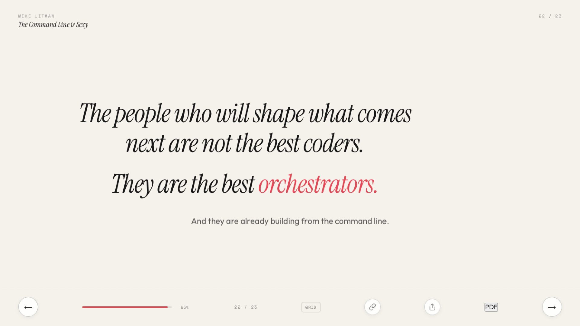 Full talk: https://mikelitman.me/cli