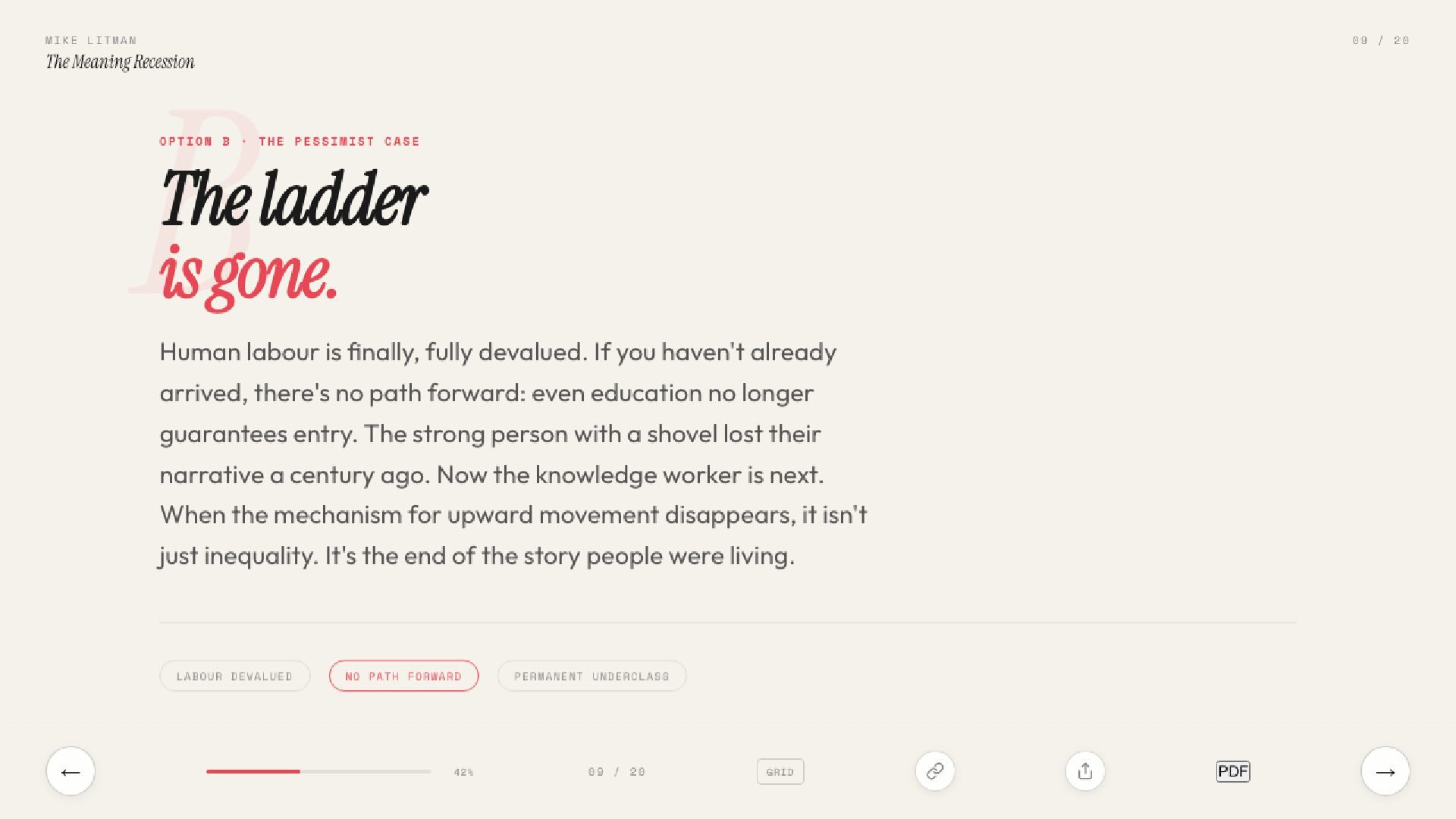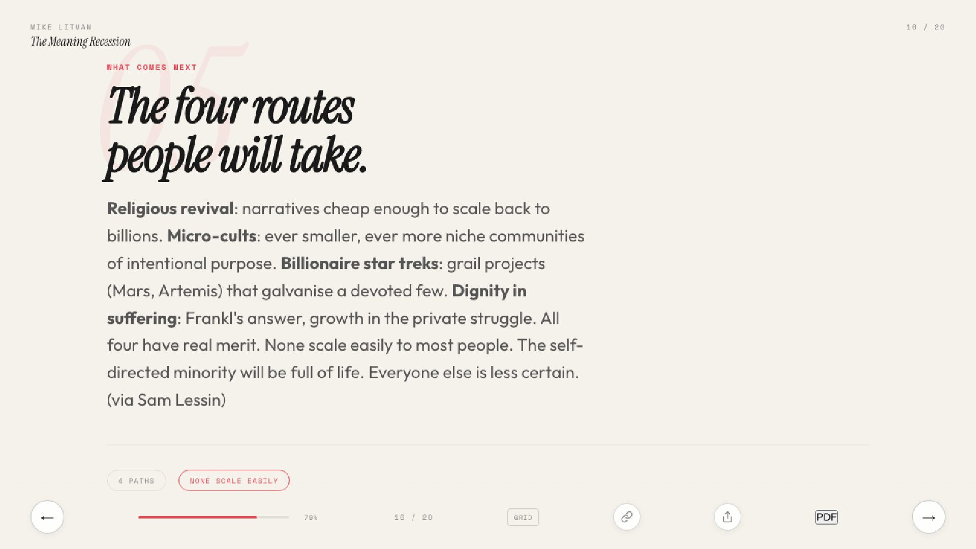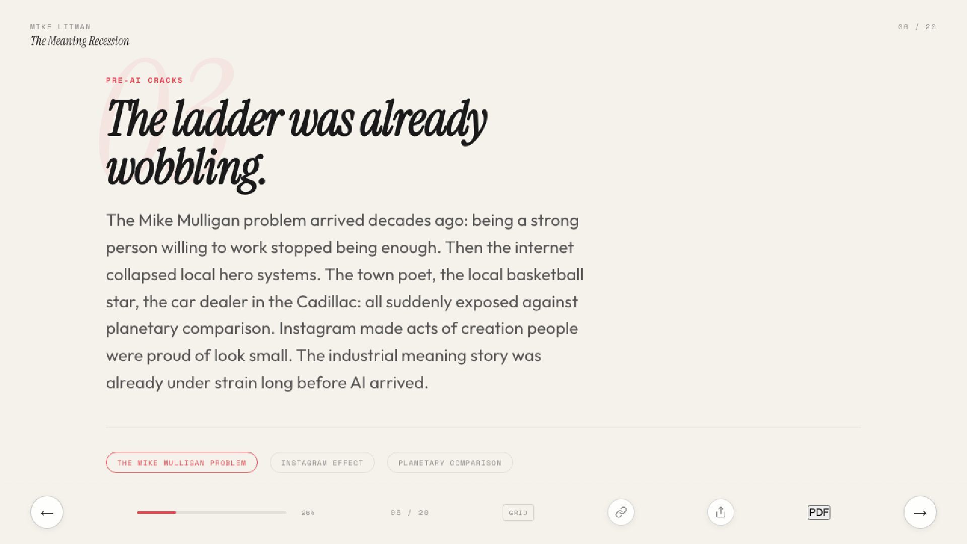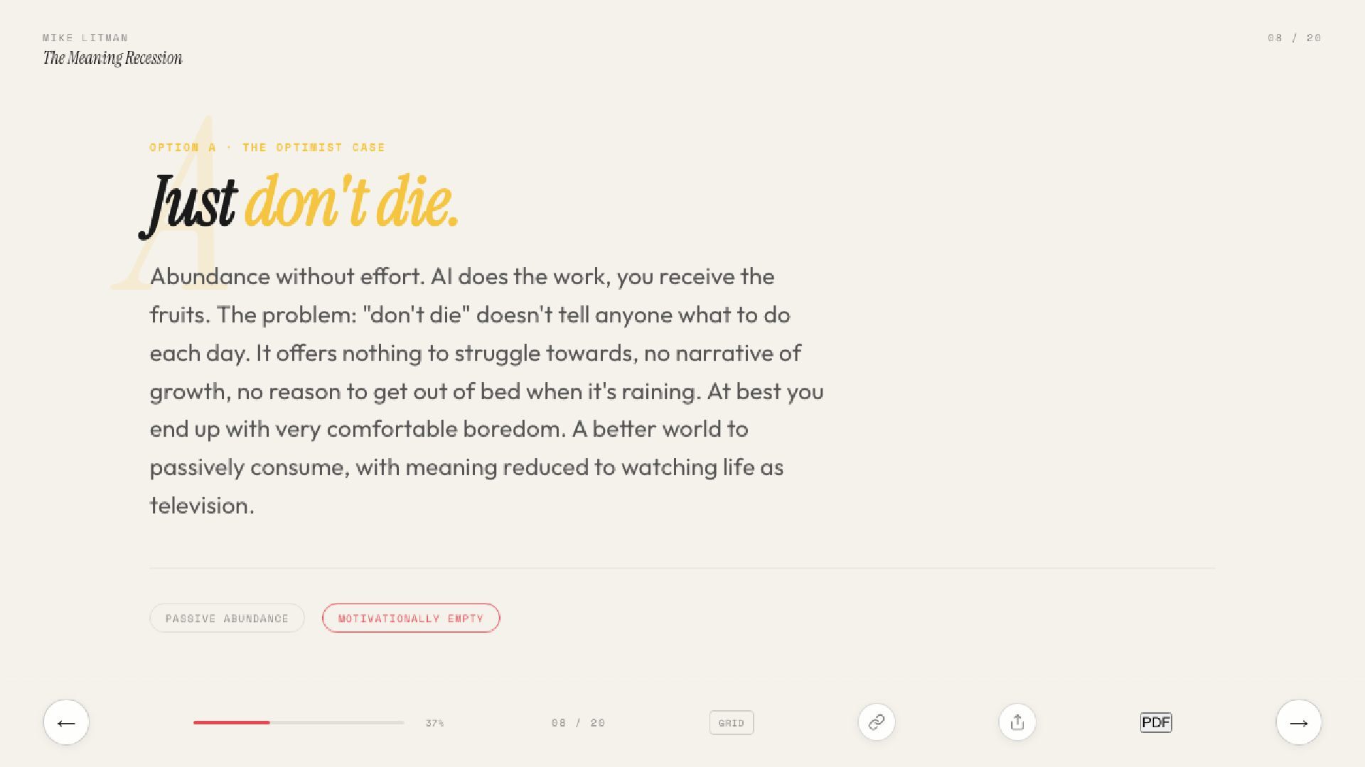 The real AI crisis isn’t about jobs. It’s about why we get out of bed. Inspired by Sam Lessin’s essay on meaning, this talk argues that AI’s deepest threat is to the stories civilisations run on.