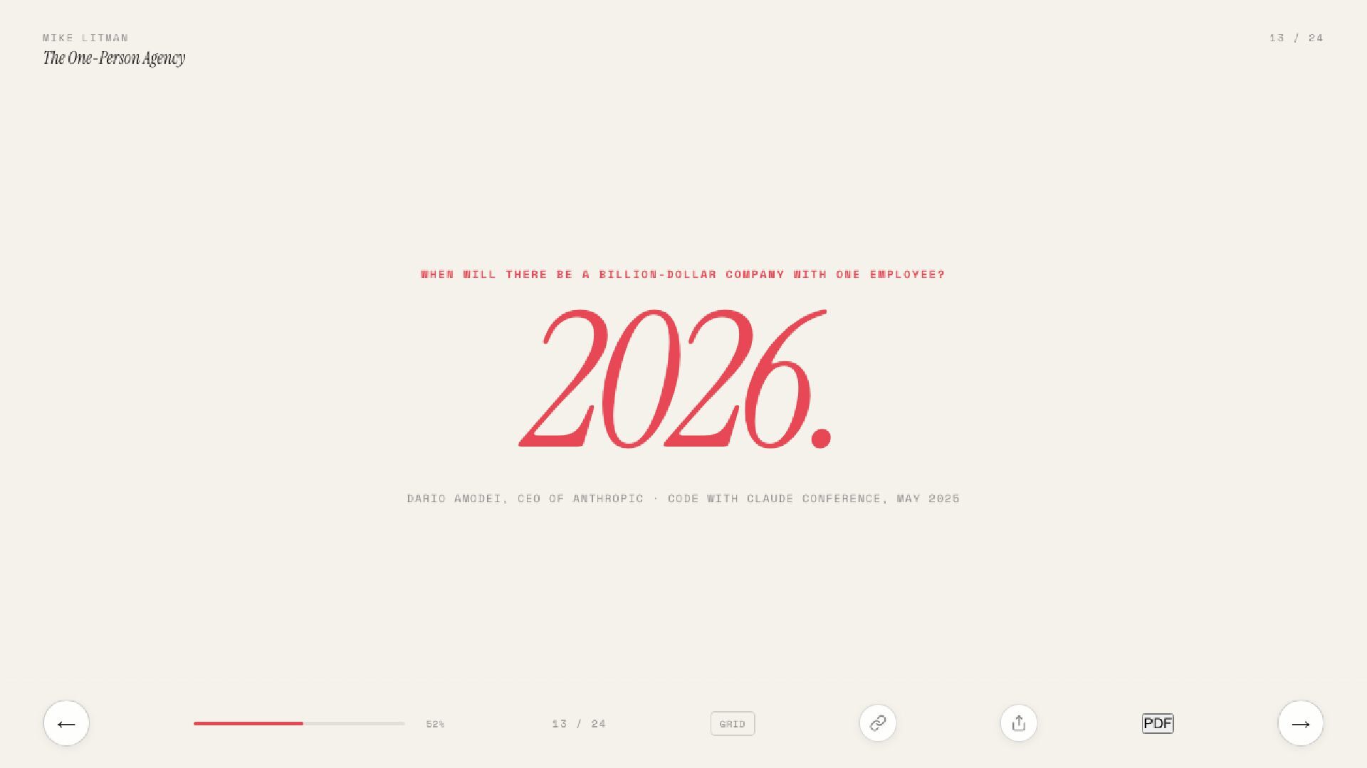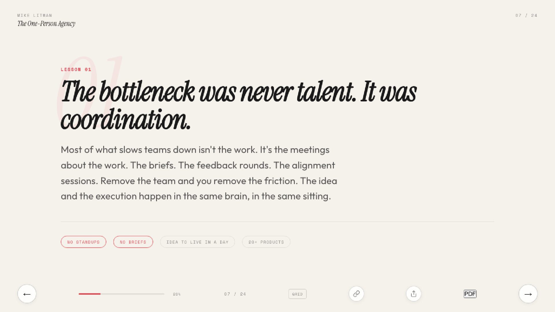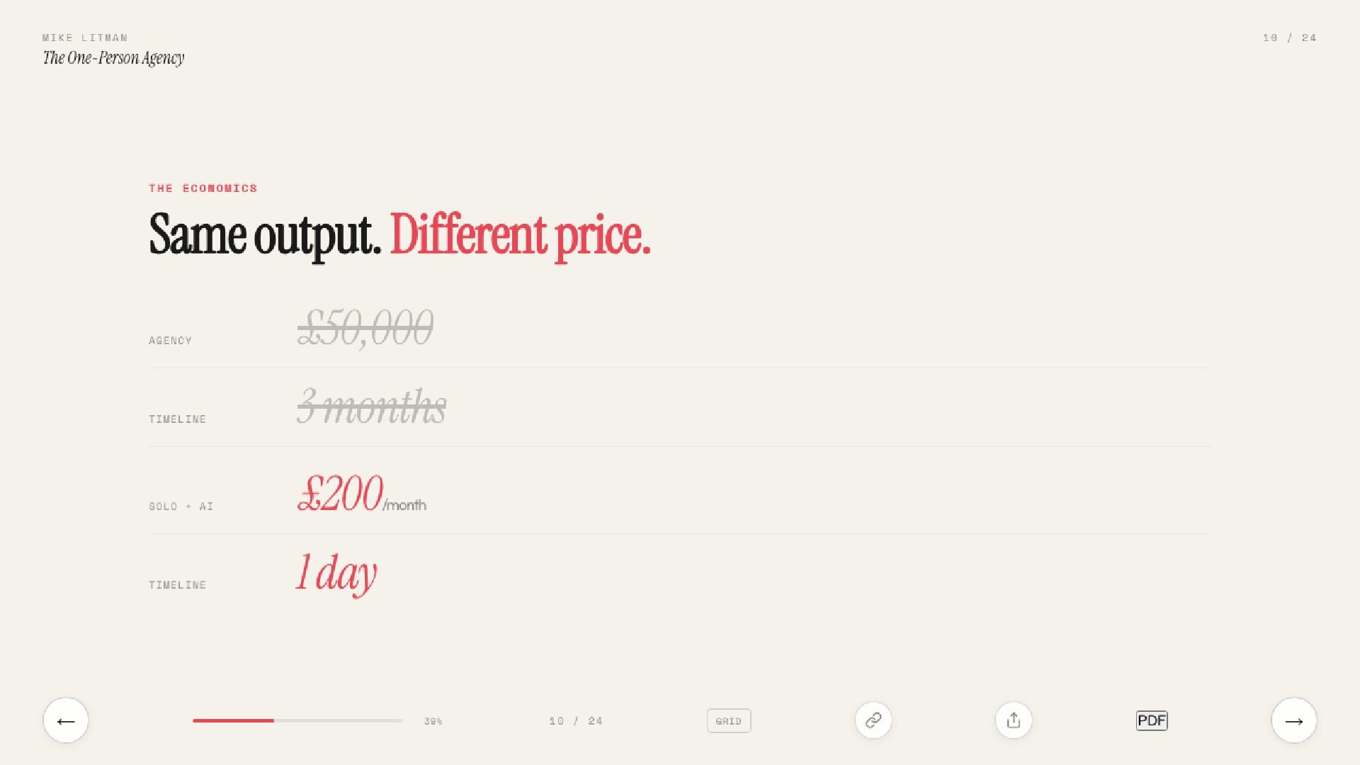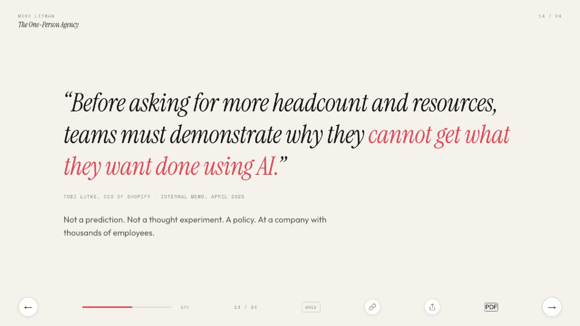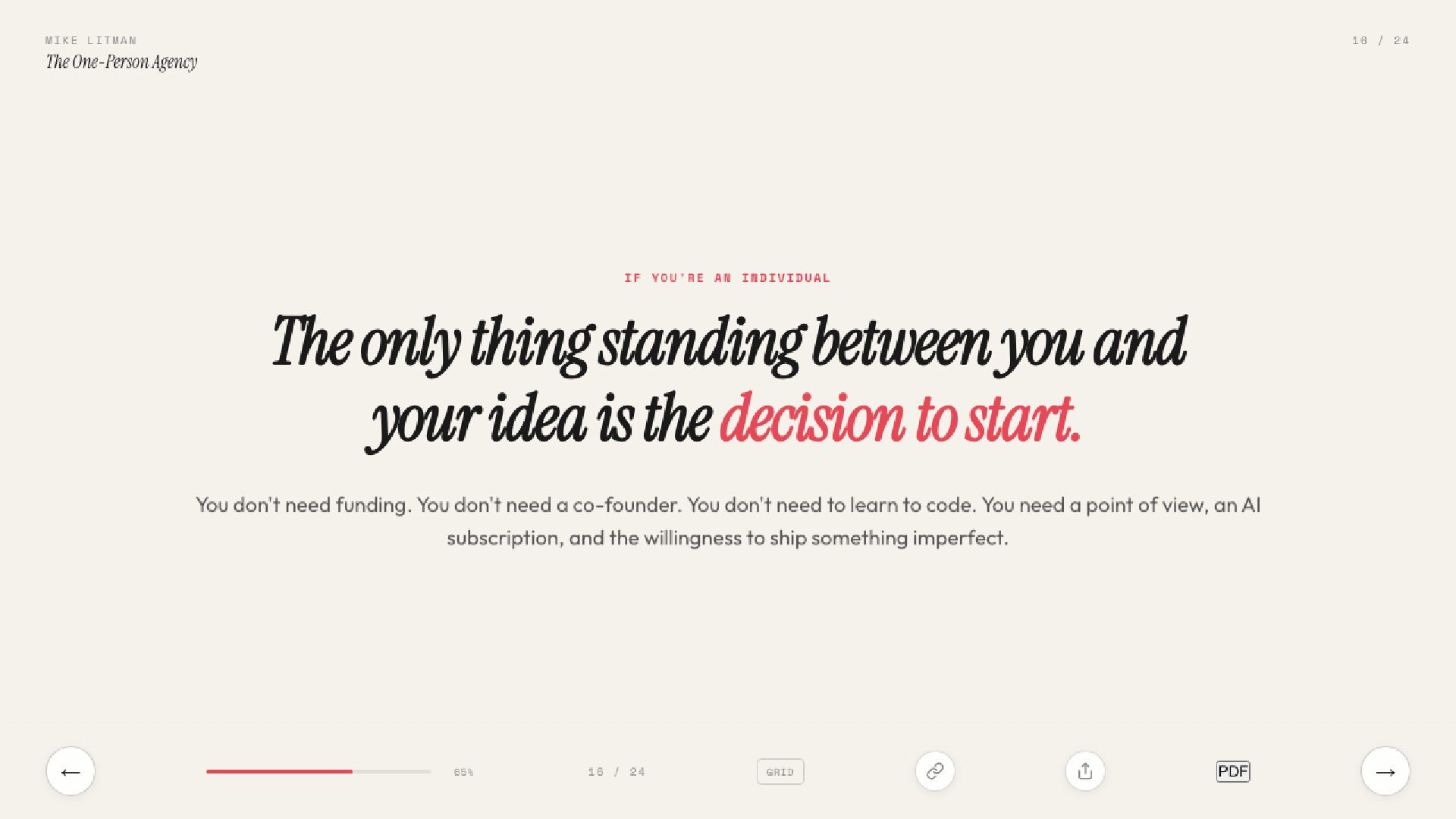 One person with AI can replace an entire agency team. 22 slides on what that means for individuals and for agencies.