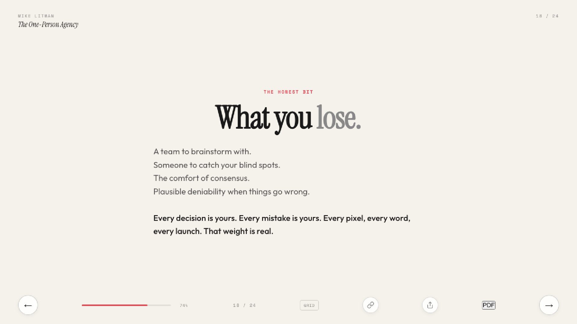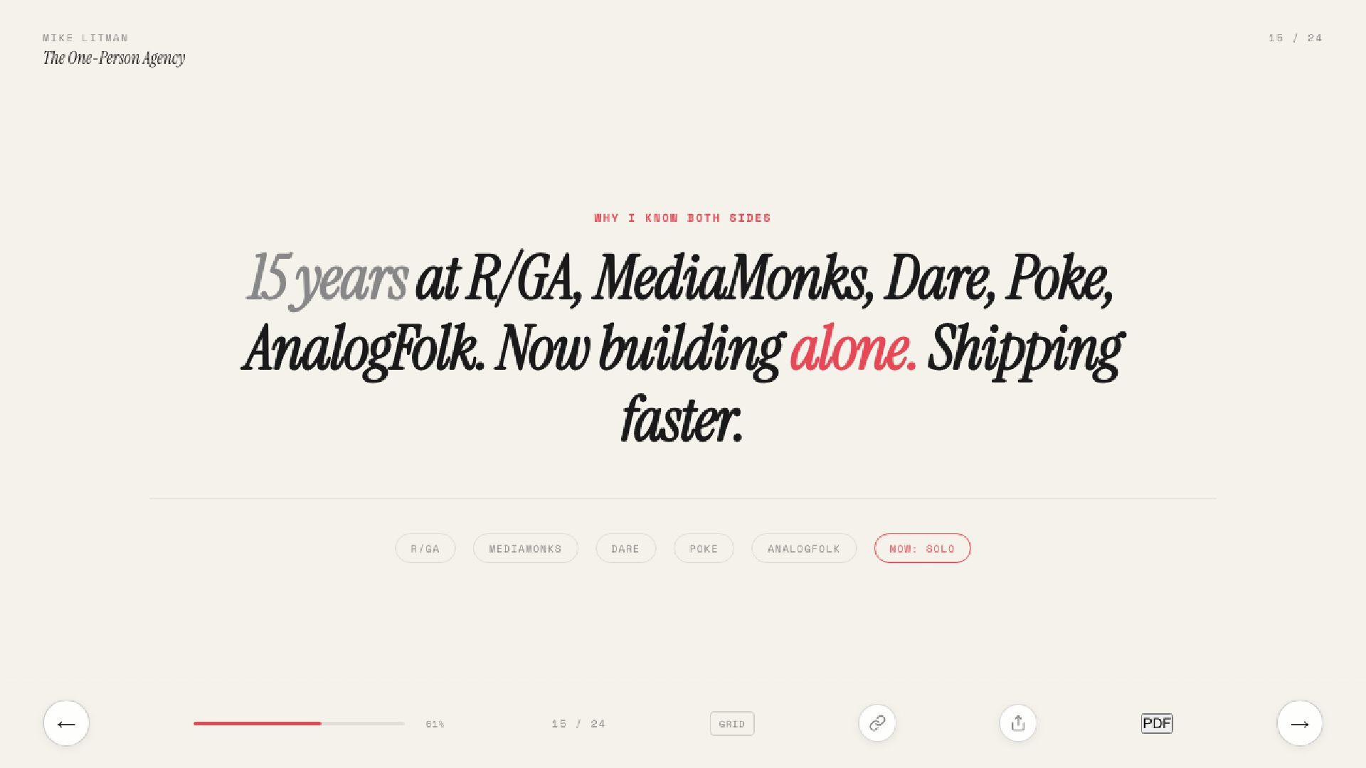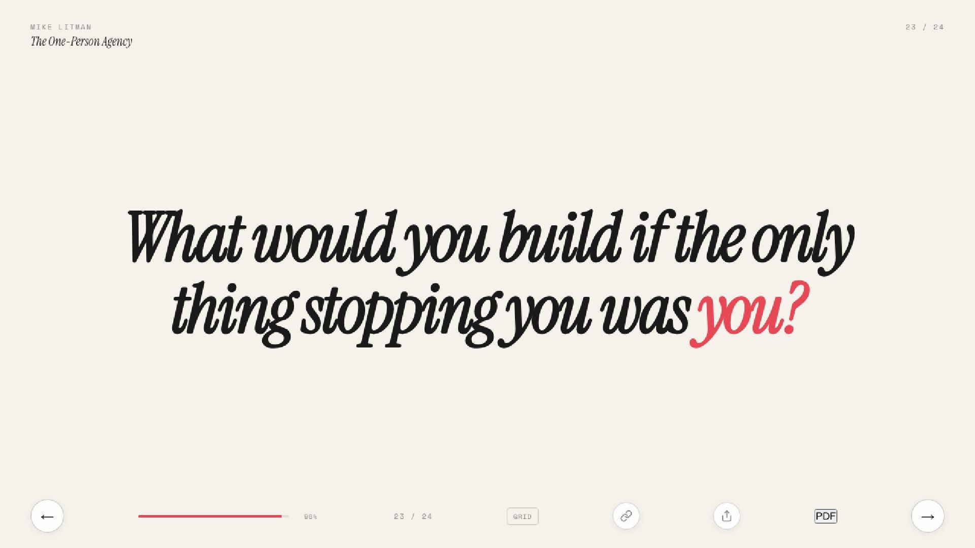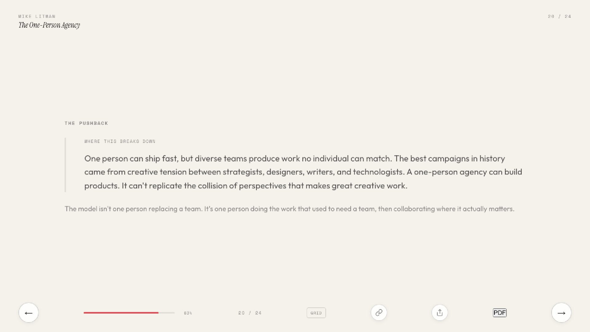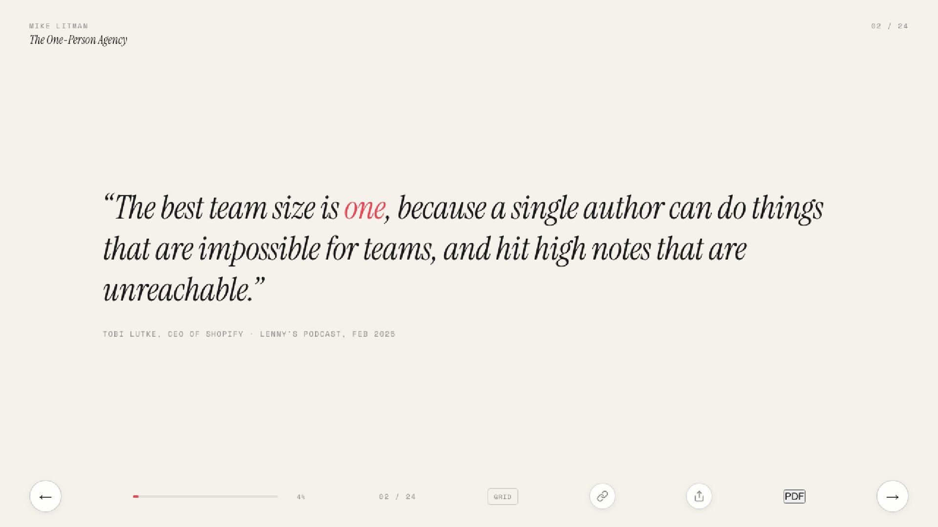 One person with AI can replace an entire agency team. 22 slides on what that means for individuals and for agencies.