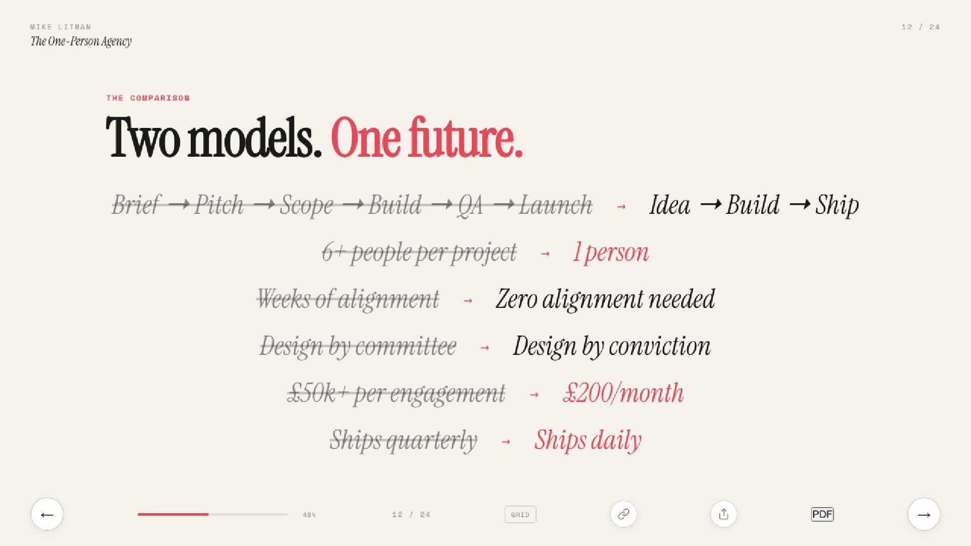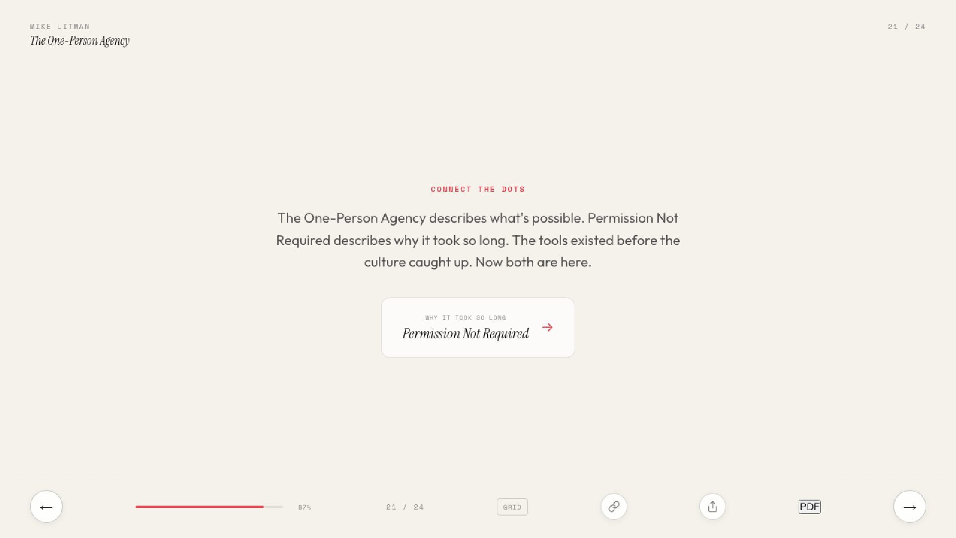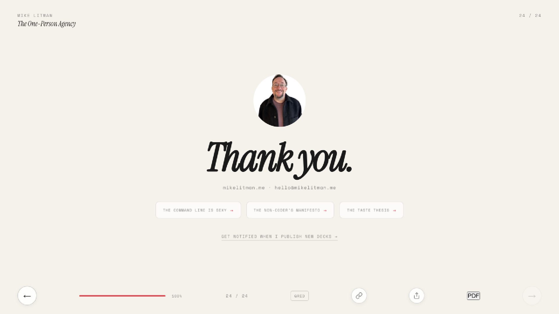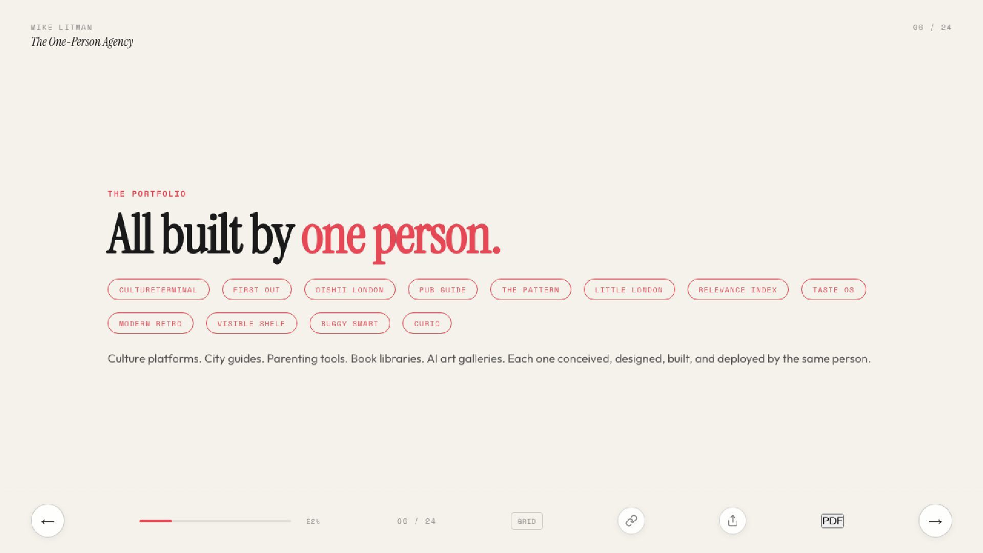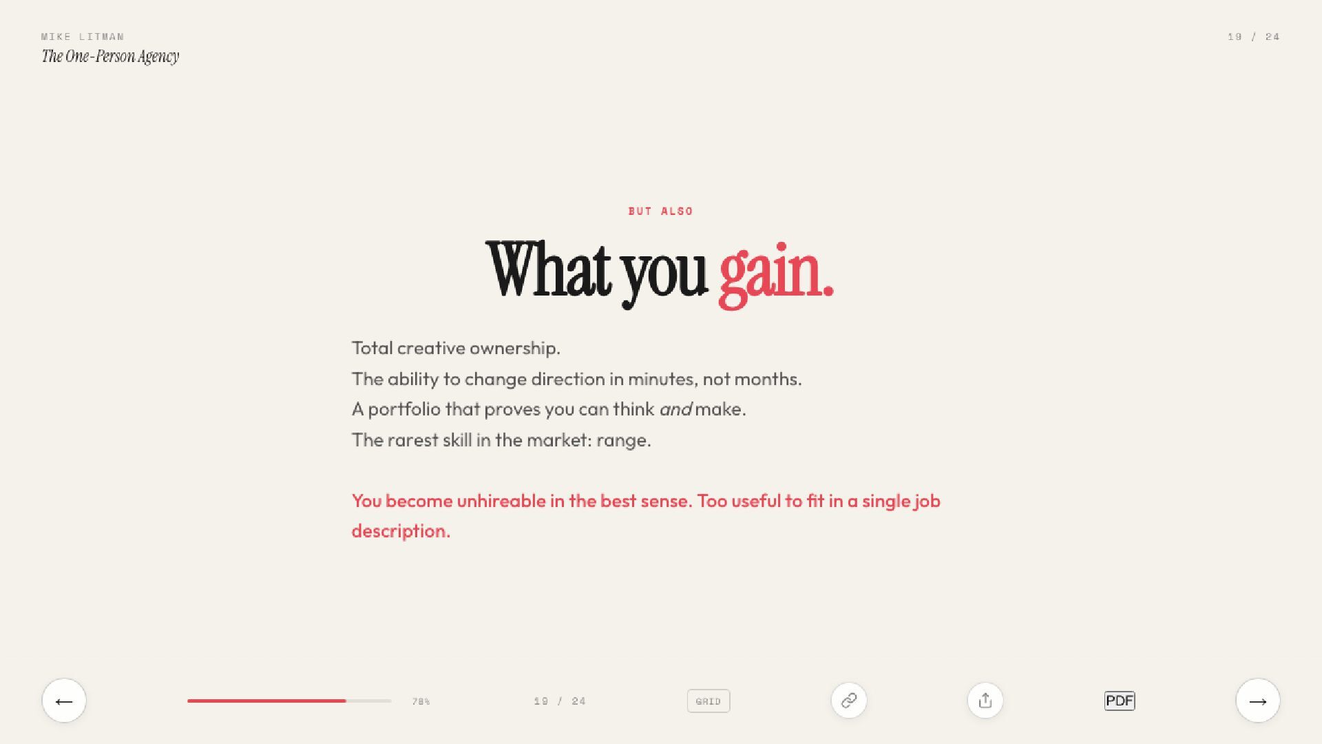 One person with AI can replace an entire agency team. 22 slides on what that means for individuals and for agencies.