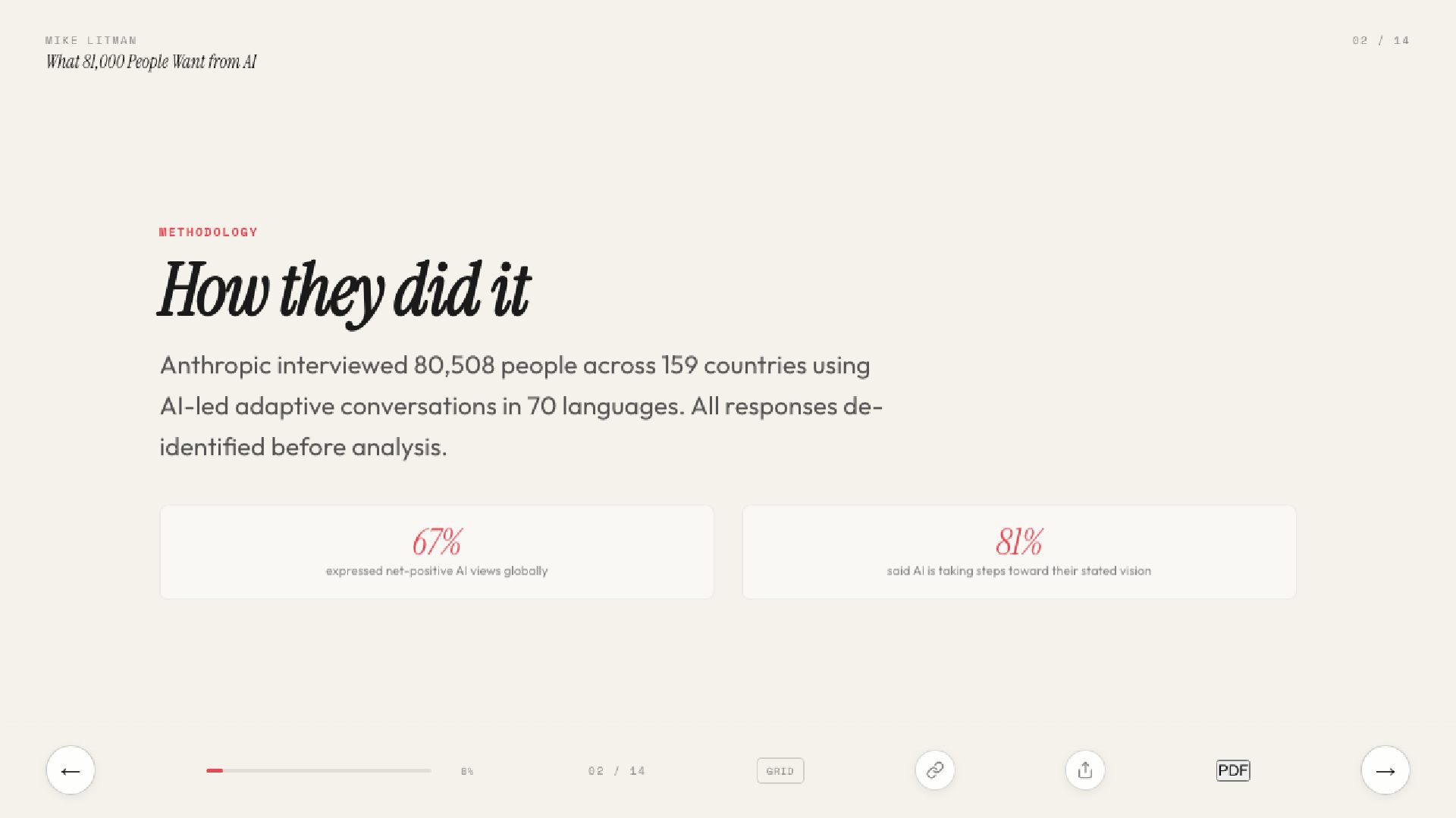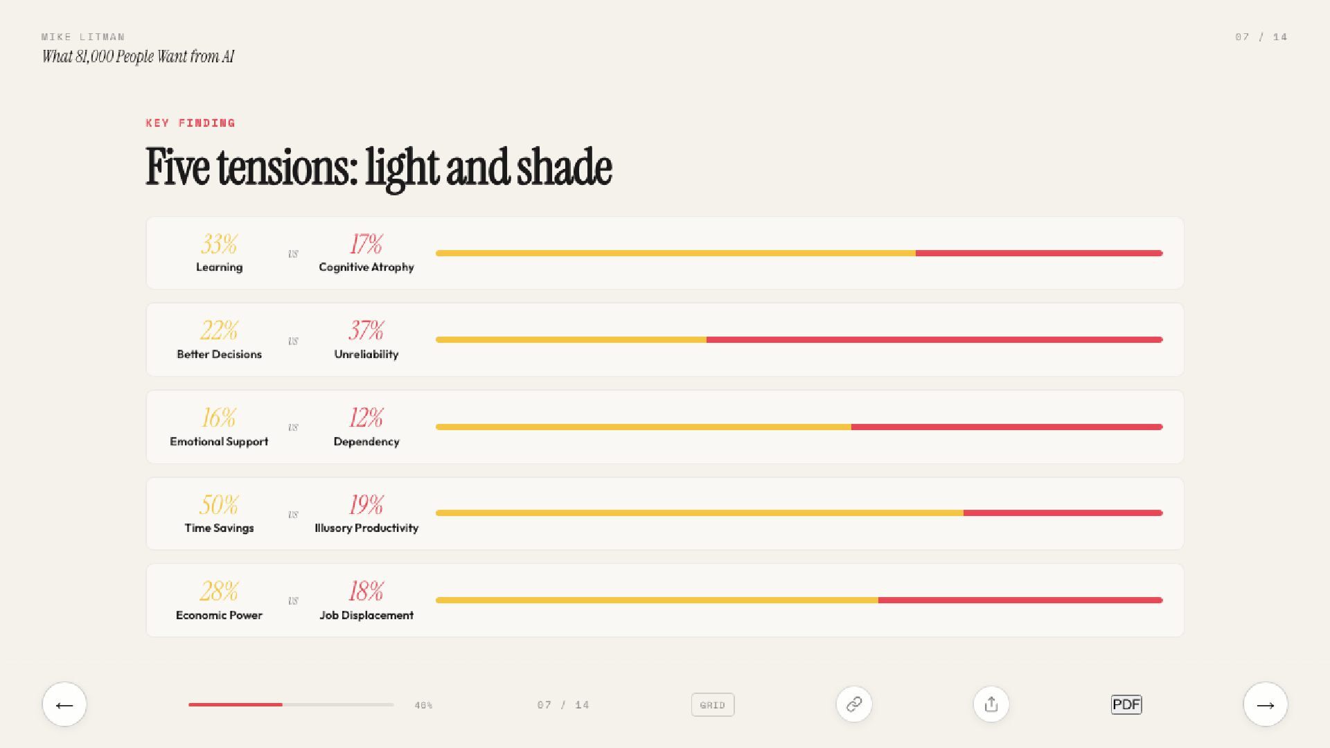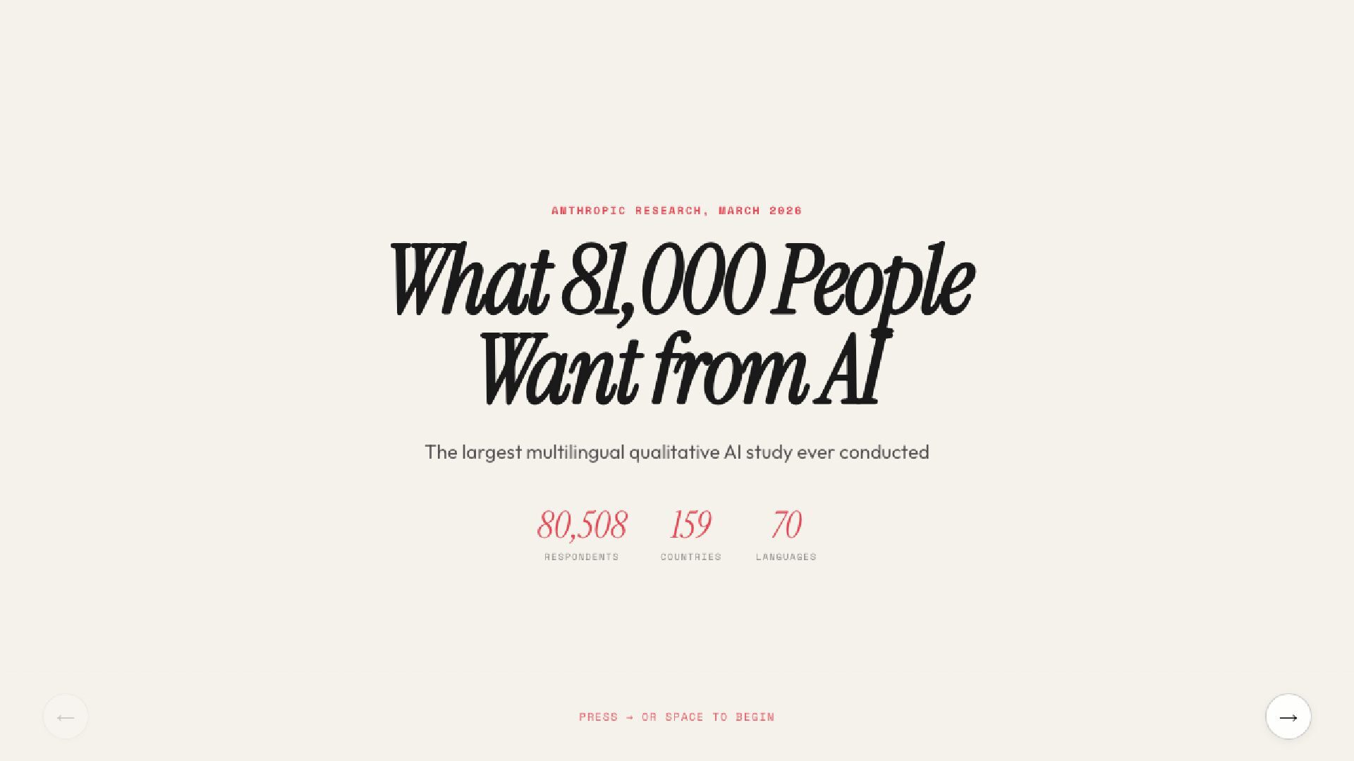 Anthropic interviewed 80,508 people across 159 countries. The result: people aren't divided into optimists and pessimists. The same individuals experience both hope and fear.