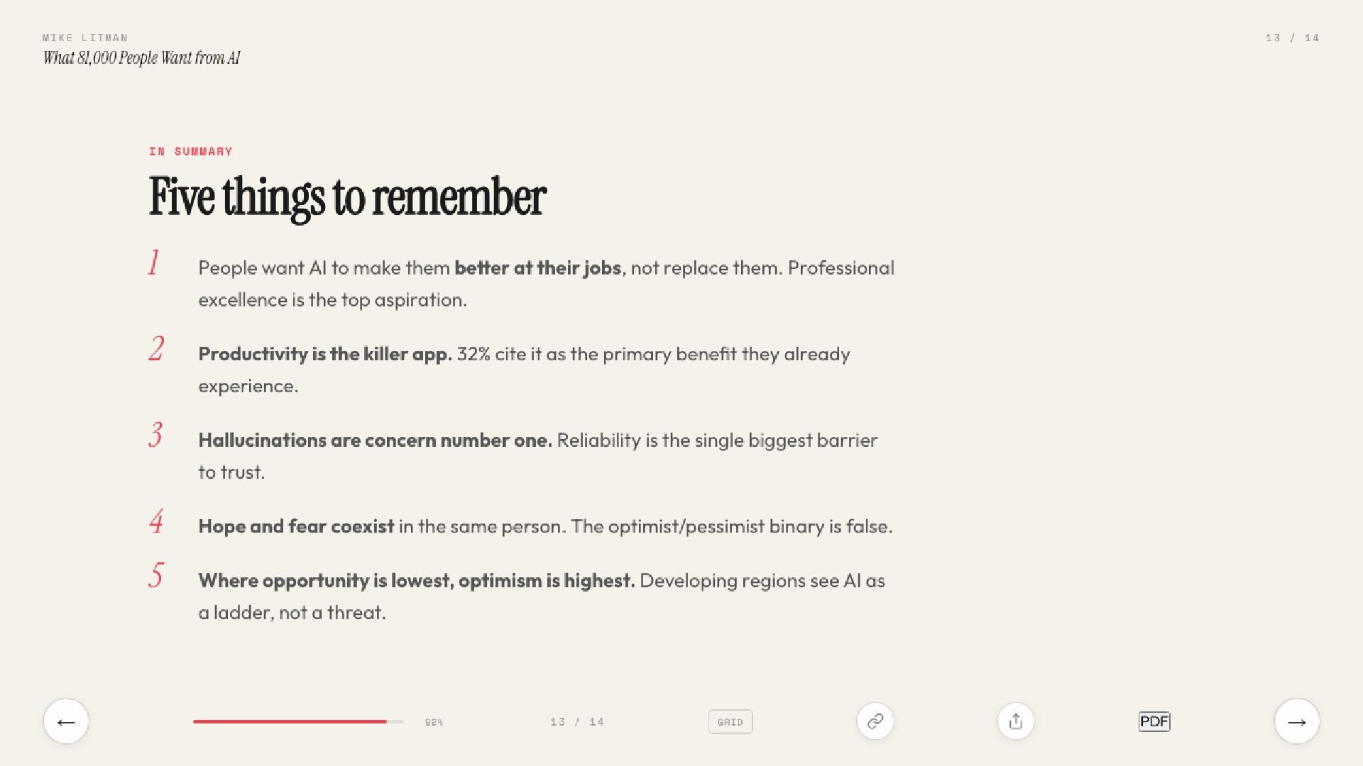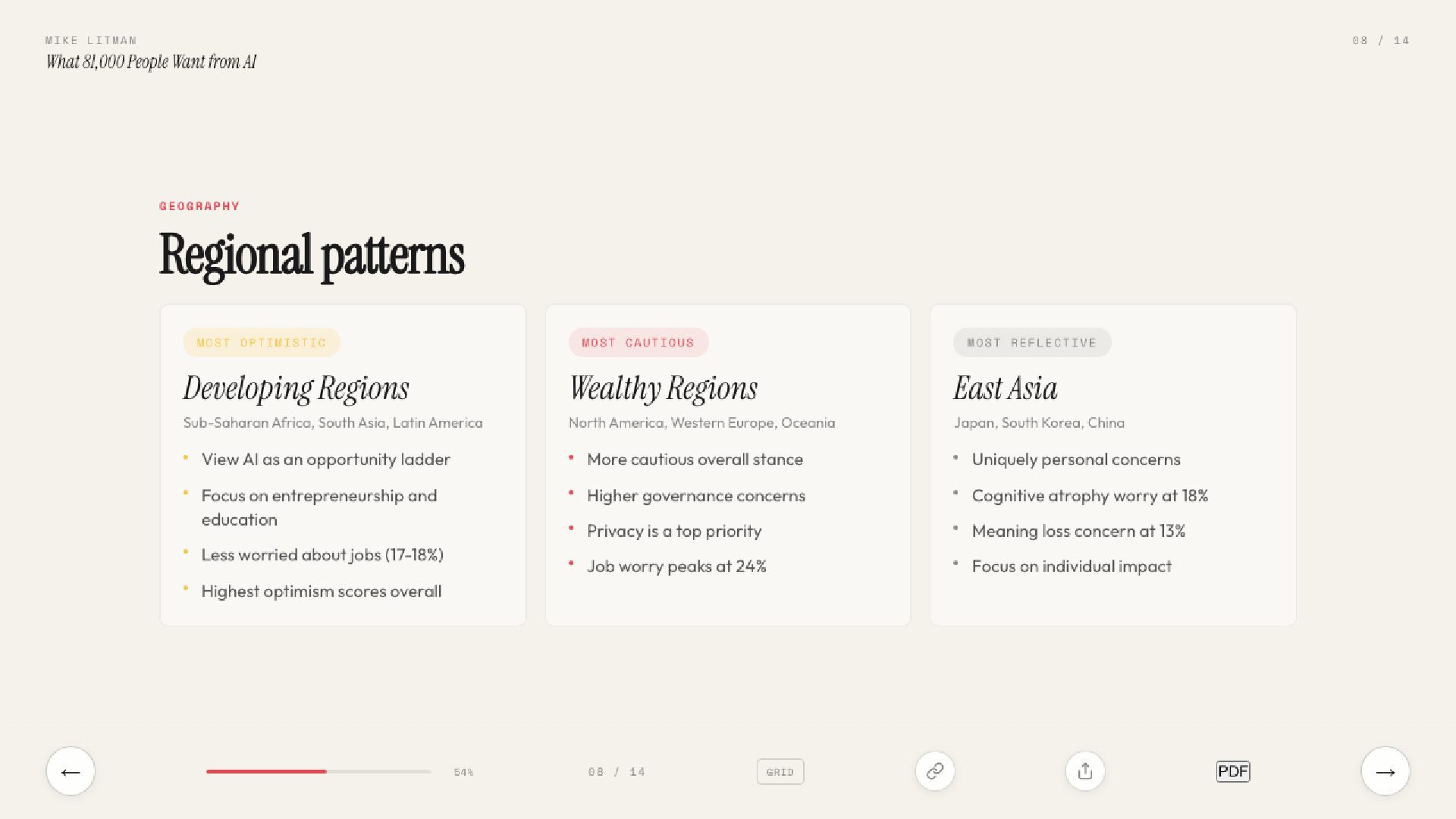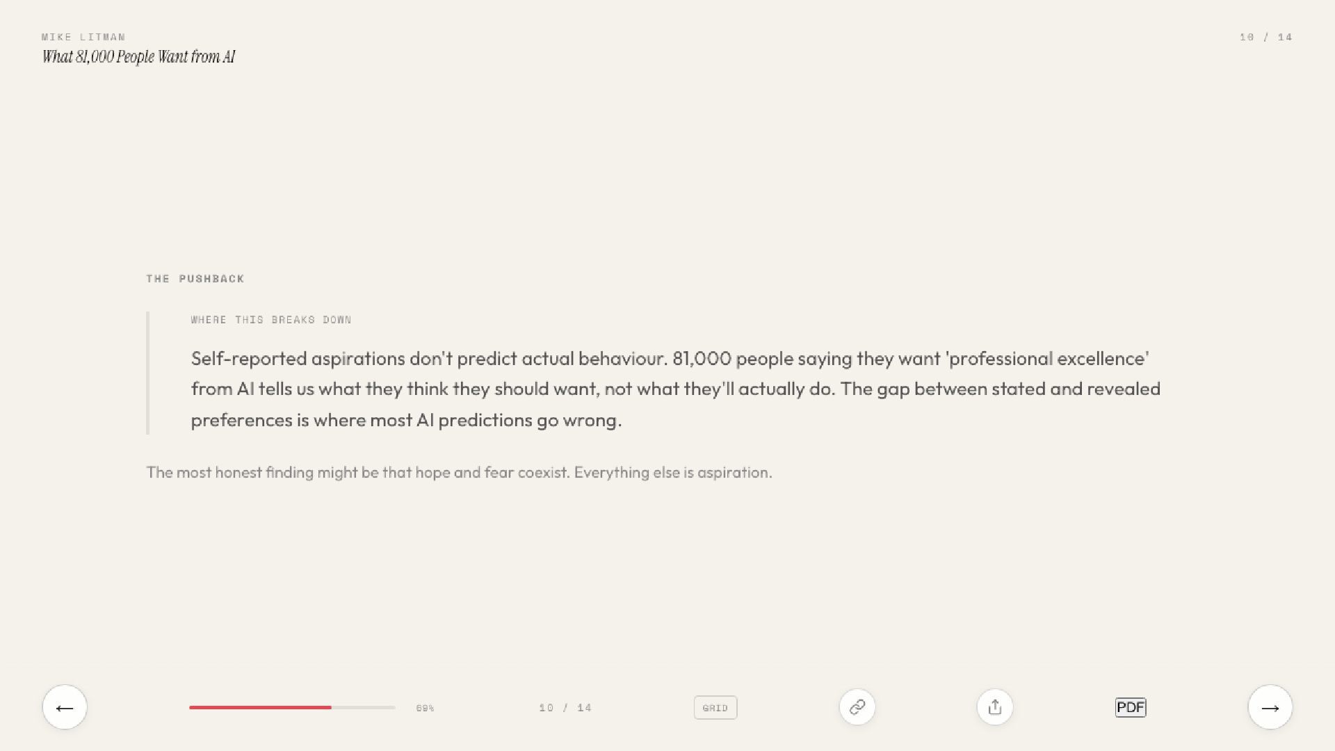 Anthropic interviewed 80,508 people across 159 countries. The result: people aren't divided into optimists and pessimists. The same individuals experience both hope and fear.