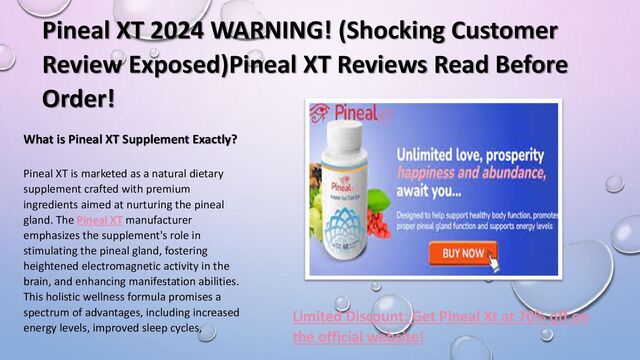 Pineal XT is marketed as a natural dietary supplement crafted with premium ingredients aimed at nurturing the pineal gland. The Pineal XT manufacturer emphasizes the supplement's role in stimulating the pineal gland, fostering heightened electromagnetic activity in the brain, and enhancing manifestation abilities. This holistic wellness formula promises a spectrum of advantages, including increased energy levels, improved sleep cycles,