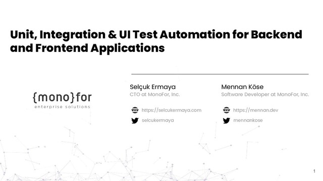 Applications Selçuk Ermaya CTO at MonoFor, Inc. 1 https://selcukermaya.com selcukermaya Mennan Köse Software Developer at MonoFor, Inc. https://mennan.dev mennankose