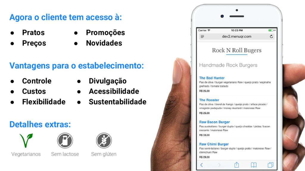 Agora o cliente tem acesso à: pratos, preços, promoções e novidades.