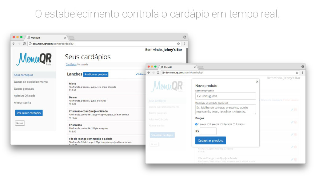 Desenvolvemos uma plataforma onde o estabelecimento controla o cardápio em tempo real, podendo adicionar, excluir e editar, produtos e promoções.