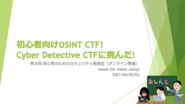 2021/04/22(木) に 第6回 初心者のためのセキュリティ勉強会 で発表した資料です。