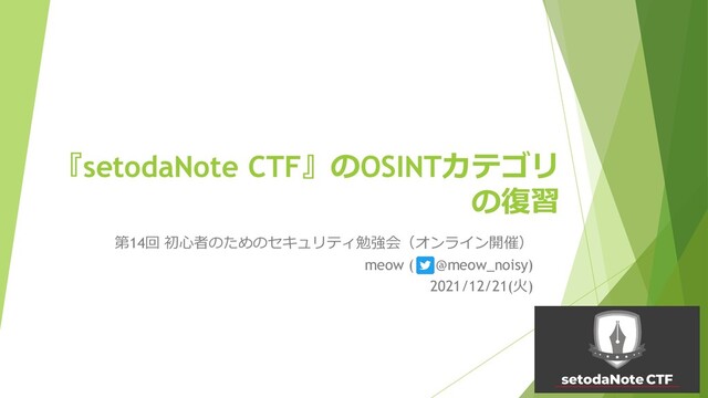 2021/12/21(火)に第14回 初心者のためのセキュリティ勉強会(オンライン開催)で発表した資料です。