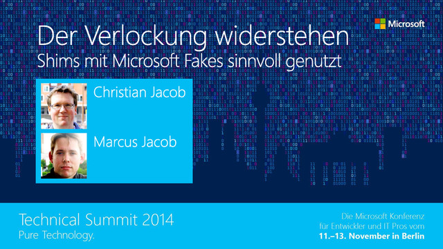 Auf die Erkenntnis hin, dass sich mit dem Microsoft Fakes Isolation Framework (kurz: Microsoft Fakes) sogar Umleitungen für Methoden implementieren lassen, in deren Quellcodebesitz man nicht ist, haben findige Entwickler bereits probiert, es zum Cheaten in Egoshootern einzusetzen. Das wäre natürlich auch einfacher, als Code disassemblieren zu müssen, Hooks zu implementieren und dergleichen mehr an Aufwand zu betreiben, statt zu lernen, wie man besser darin wird, das Spiel zu spielen. Aber Spaß beiseite, Microsoft Fakes kann natürlich nur im Kontext von Unit Tests eingesetzt werden. Wir werden in der Session selbst einen kleinen Blick unter die Haube riskieren, um zu schauen warum das so ist, und wie Fakes arbeitet. Außerdem stellen wir uns die Frage, wie Detouring funktioniert und uns Szenarien überlegen, in denen Shims Sinn ergeben. Auch auf Stubs wird schließlich ein Blick geworfen – der Vollständigkeit halber. Denn wie man mittels Interfaces Abhängigkeiten isoliert, weiß ja mittlerweile jeder... oder?