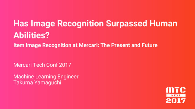 have achieved human-level precision • Studied categorization modeling using Mercari item images • Our item recognition rates were far from ImageNet recognition rates • Categories with high rate of recognition errors: • Categories like “others” whose definition is not clear or specific • Categories defined by different sizes and gender (men’s, women’s, kids’, etc) • There is space for improvement • High parameter adjustment at the time of learning • Add machine learning data (especially for categories that consist of a variety of items) • Future development • Prediction to include not just categories but item titles, brand, price, color, etc • A prototype for predictions using above factors is already made; we are currently testing its accuracy • When there is a lack of product and brand knowledge, it seems as though the prediction has surpassed human capabilities • e.g. Combi baby wipe warmer / BVLGARI pour homme