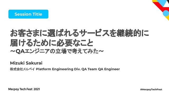 Merpay Tech Fest 2021_お客さまに選ばれるサービスを継続的に届けるために必要なこと〜QAエンジニアの立場で考えてみた〜 / What you need to deliver continuous service of choice for your customers Thinking as a QA engineer