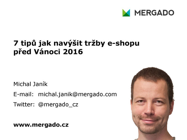 Prezentace Michala Janíka o tom, jak navýšit tržby e-shopu před Vánoci 2016 s pomocí Mergada. Prezentaci Michal představil na ShopCommu 2016 v Bratislavě. Podrobnosti najdete v článku na www.mergado.cz/shopcomm-2016-bratislava-prezentace