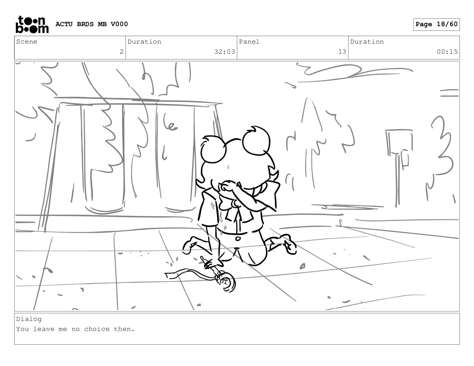 Scene 2 Duration 32:03 Panel 13 Duration 00:15 Dialog You