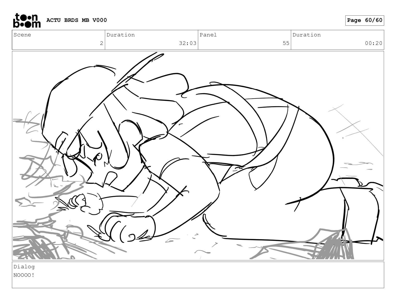 Scene 2 Duration 32:03 Panel 54 Duration 00:05 Dialog NOOOO!