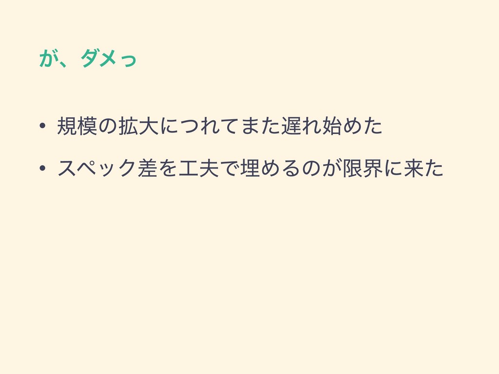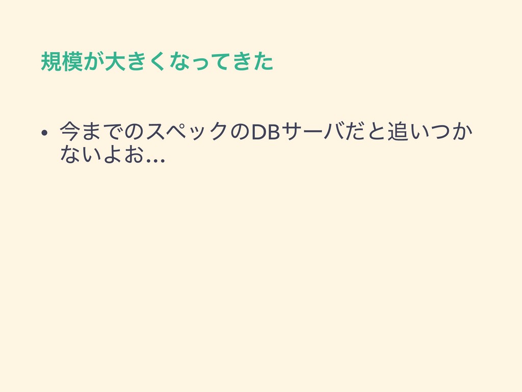 ن͕େ͖͘ͳ͖ͬͯͨ • ࠓ·ͰͷεϖοΫͷDBαʔόͩͱ͍͔ͭ ͳ͍Α͓…
