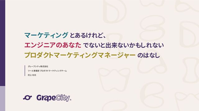 「マーケティングとあるけれど、エンジニアのあなたでないと出来ないかもしれないプロダクトマーケティングマネージャーのはなし」 グレープシティ株式会社 ツール事業部 村上 功光