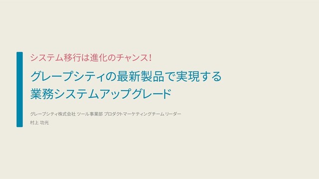 グレープシティ/After VB 最新開発支援製品編 「システム移行は進化のチャンス!グレープシティの最新製品で実現する業務システムアップグレード」 グレープシティ株式会社 ツール事業部 村上 功光