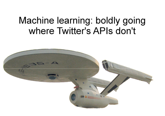 per 15 mins) on /statuses/show:id • We can get more resource by using our users API allowance, but that still isn't enough • API doesn't give all we want :( (Favourites)