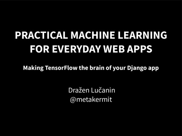 A new wave of machine learning is in full swing. This talk gives an overview of the modern Python machine learning stack based on TensorFlow and my practical experiences from using it in a typical Django web app.
