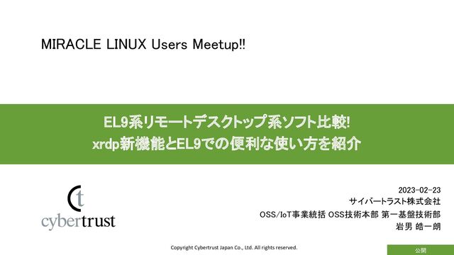 ログイン画面のスケーリング対応・デザインリニューアル ▪ 設定ファイルのフォーマットをTOML形式に移行予定 • 自前のINIパーサーを廃止してライブラリを導入 • 従来の設定ファイルとは非互換・手動での移行が必要 ▪ GFX (Graphics Pipeline Extension) サポート • 2K/4K の普及によりNSCodec/RFXではパフォーマンスがつらくなっていた ▪ 1366×768 時代には快適だったが… • 非可逆圧縮も活用したより効率的な圧縮を導入したい • 鋭意開発中 ▪ 内部のリファクタリング xrdp v1.0 のトピックス