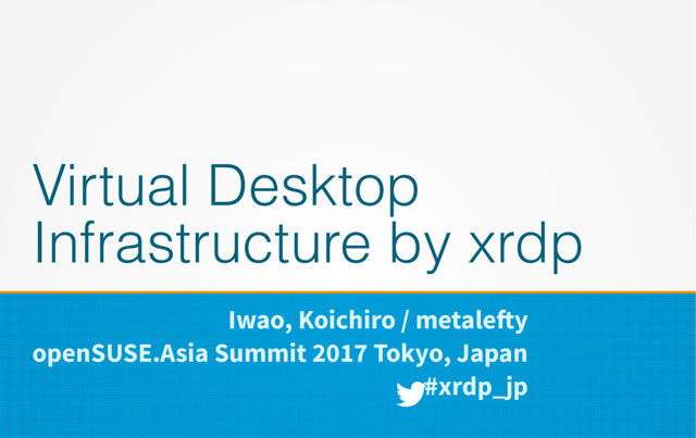 built in SUSE? if not, let's add it • xrdp v0.9.4 supports following codecs – LPCM, Opus, MP3, AAC (still experimental) • Requires client support – Windows client supports MP3 and AAC – FreeRDP supports LPCM only so far